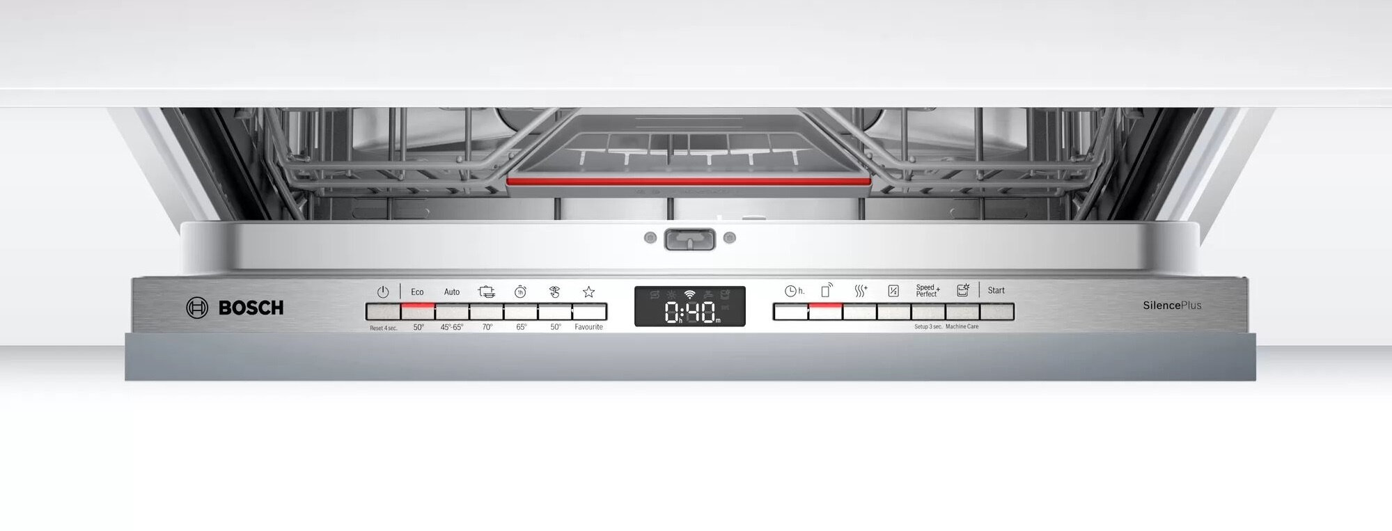 Встраиваемая посудомоечная машина Bosch SMV4HCX48E оснащен индикацией InfoLight на полу отображается красный луч, он означает, что идет процесс мытья. Home Connect позволяет управлять устройством прямо с вашего смартфона отдаленно. Система Aqua Stop защищает от любых протечек.