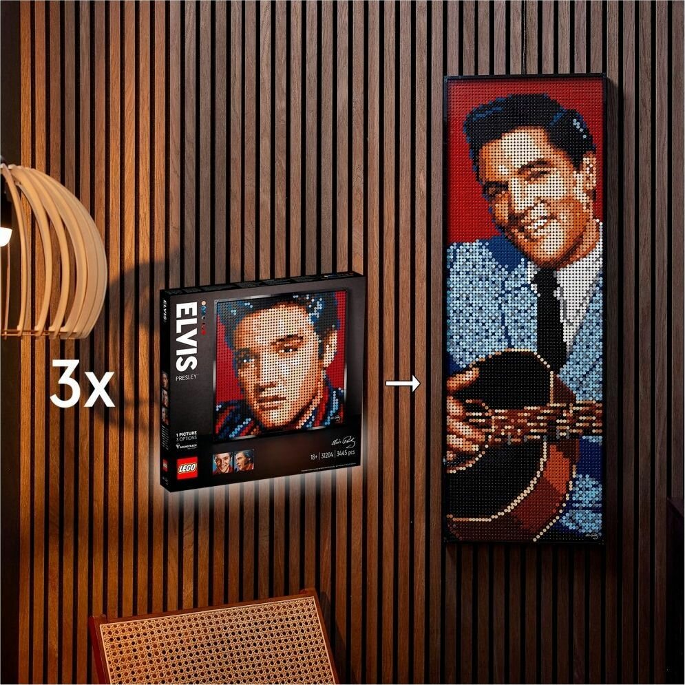 Любители музыки и поклонники Элвиса Пресли, у нас есть набор для вас! Набор «Элвис Пресли, „Король“» LEGO Art (31204) позволяет вам собрать любой из трех портретов культового певца. Погрузившись в сборку, вы будет создавать не только картину, — вы создадите область счастливого дзена со спокойной сосредоточенностью, усиливающейся с каждой плиткой, которую вы вставляете на место. Сделайте подарок — площадь этого набора LEGO Art составляет более 40 см, и его можно повесить на стену или поставить на полку.