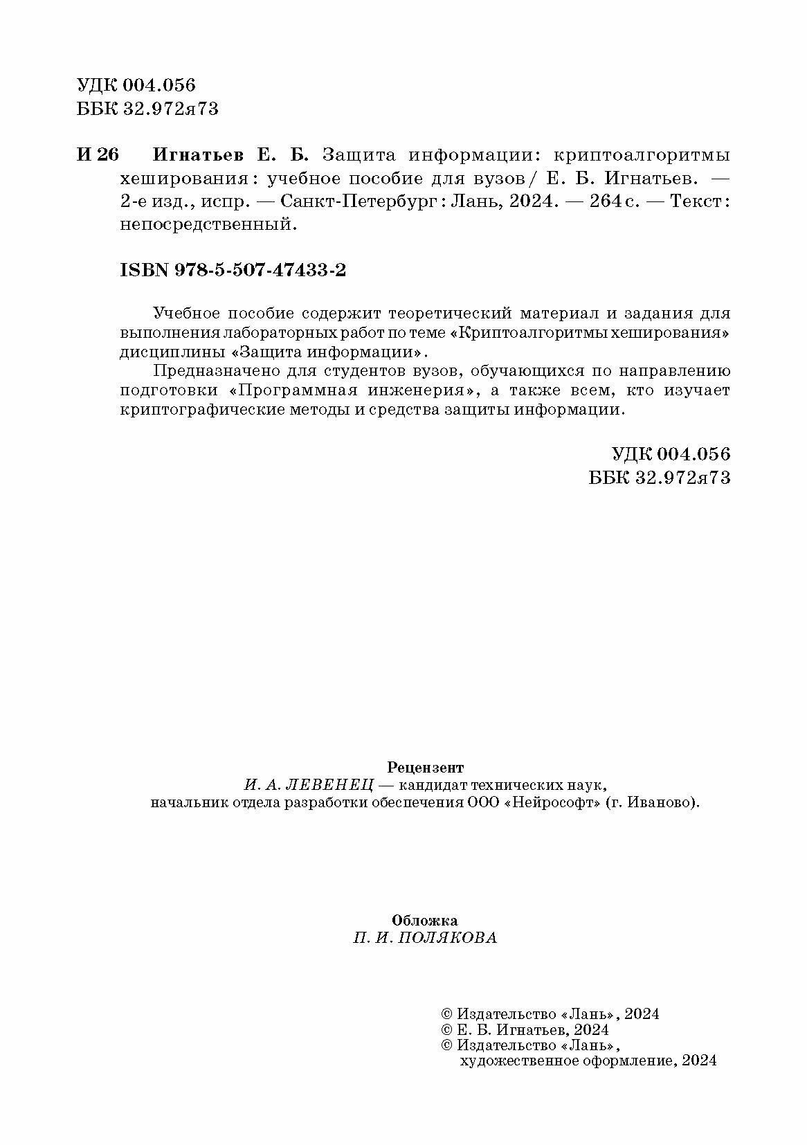 Защита информации. Криптоалгоритмы хеширования. Учебное пособие для вузов (Коллектив авторов); Издательство ЛАНЬ, 2023
