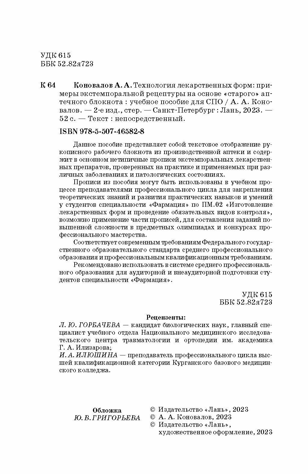 Технология лекарственных форм. Примеры экстемпоральной рецептуры на основе «старого» аптечного блок. (Коновалов Андрей Александрович); Лань, 2023