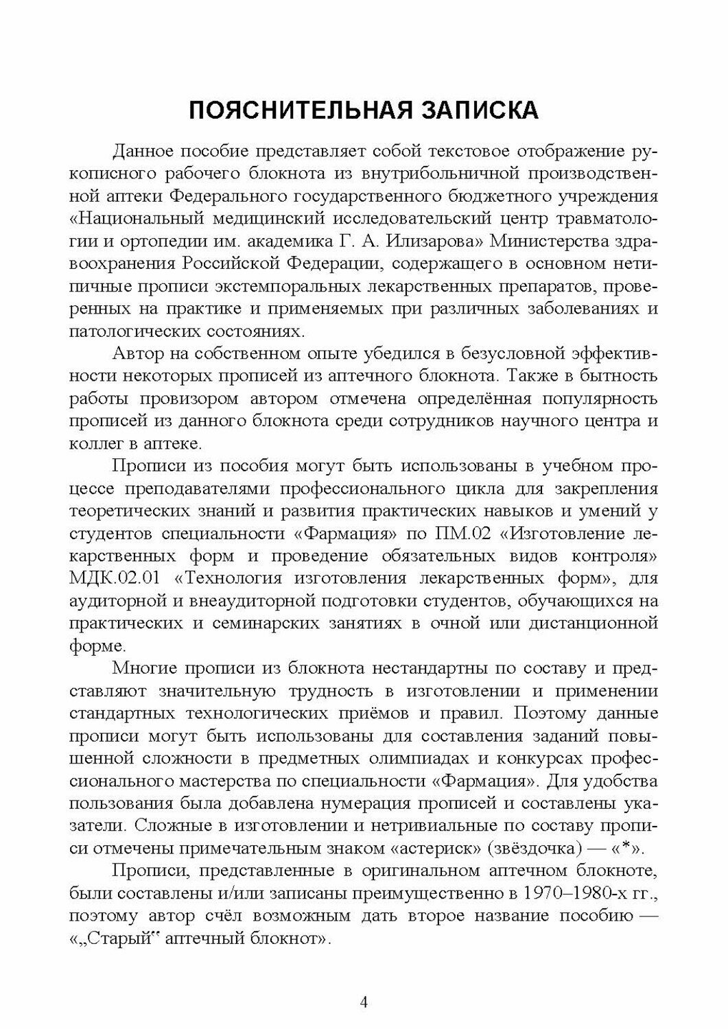 Данное пособие представляет собой текстовое отображение рукописного рабочего блокнота из производственной аптеки и содержит в основном нетипичные прописи экстемпоральных лекарственных препаратов, проверенных на практике и применяемых при различных заболеваниях и патологических состояниях.
