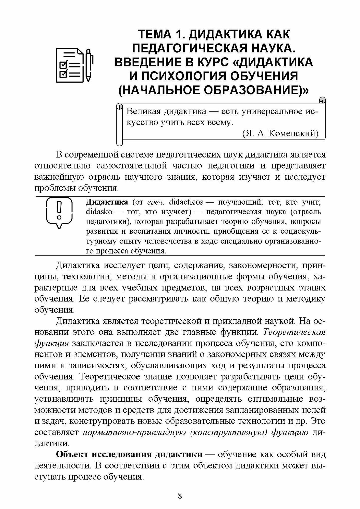 В учебном пособии рассмотрены основные принципы организации процесса обучения младших школьников с учетом достижений отечественной психологии и требований современных нормативных документов в сфере начального образования. В нем содержатся базовые положения по основным разделам курса «Педагогика и психология начального образования», которые сопровождаются практическими примерами и высказываниями известных педагогов и психологов. Каждая тема завершается вопросами для итогового контроля.