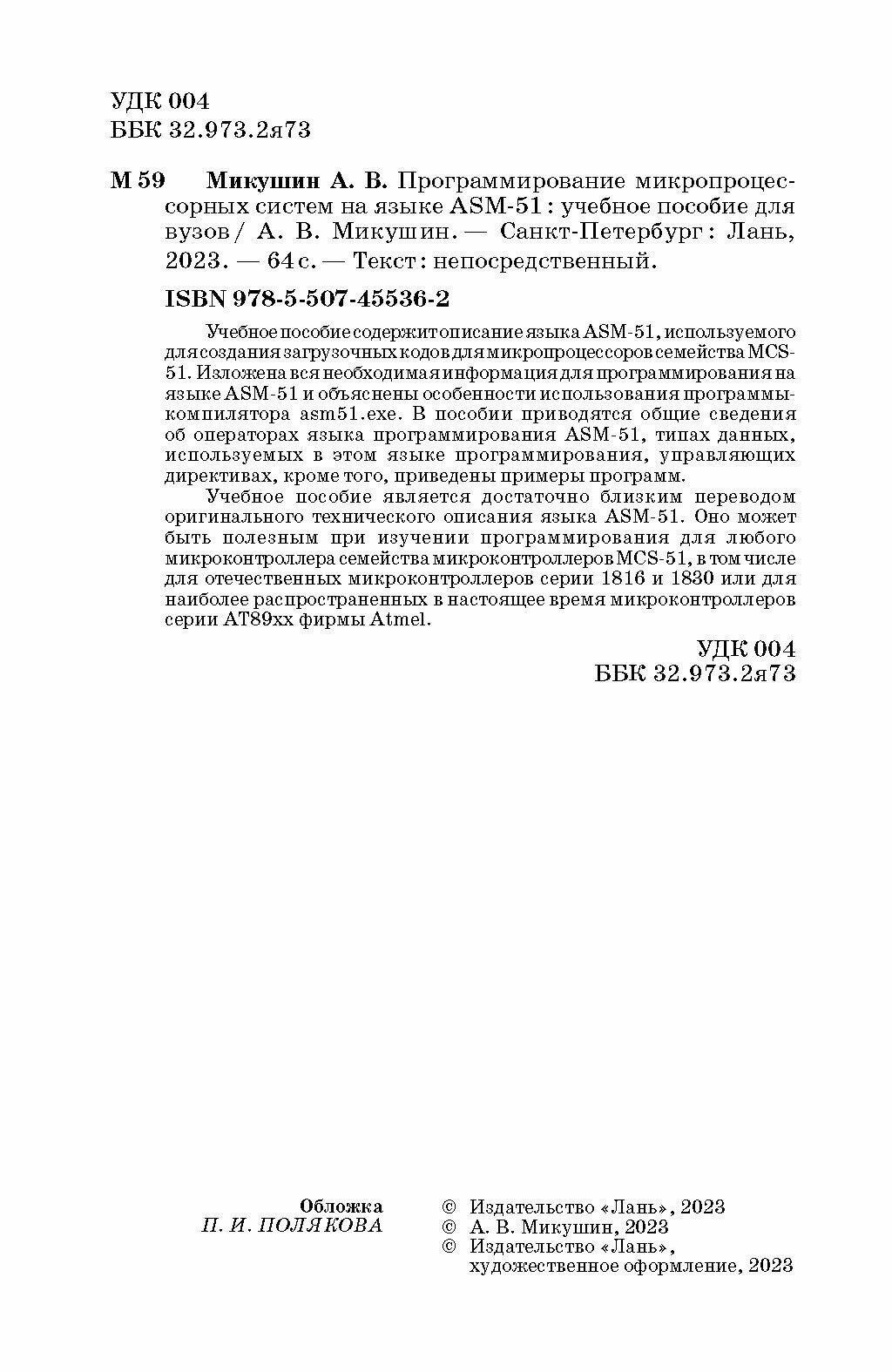 Программирование микропроцессорных систем на языке ASM-51. Учебное пособие для вузов (Коллектив авторов); Издательство ЛАНЬ, 2023