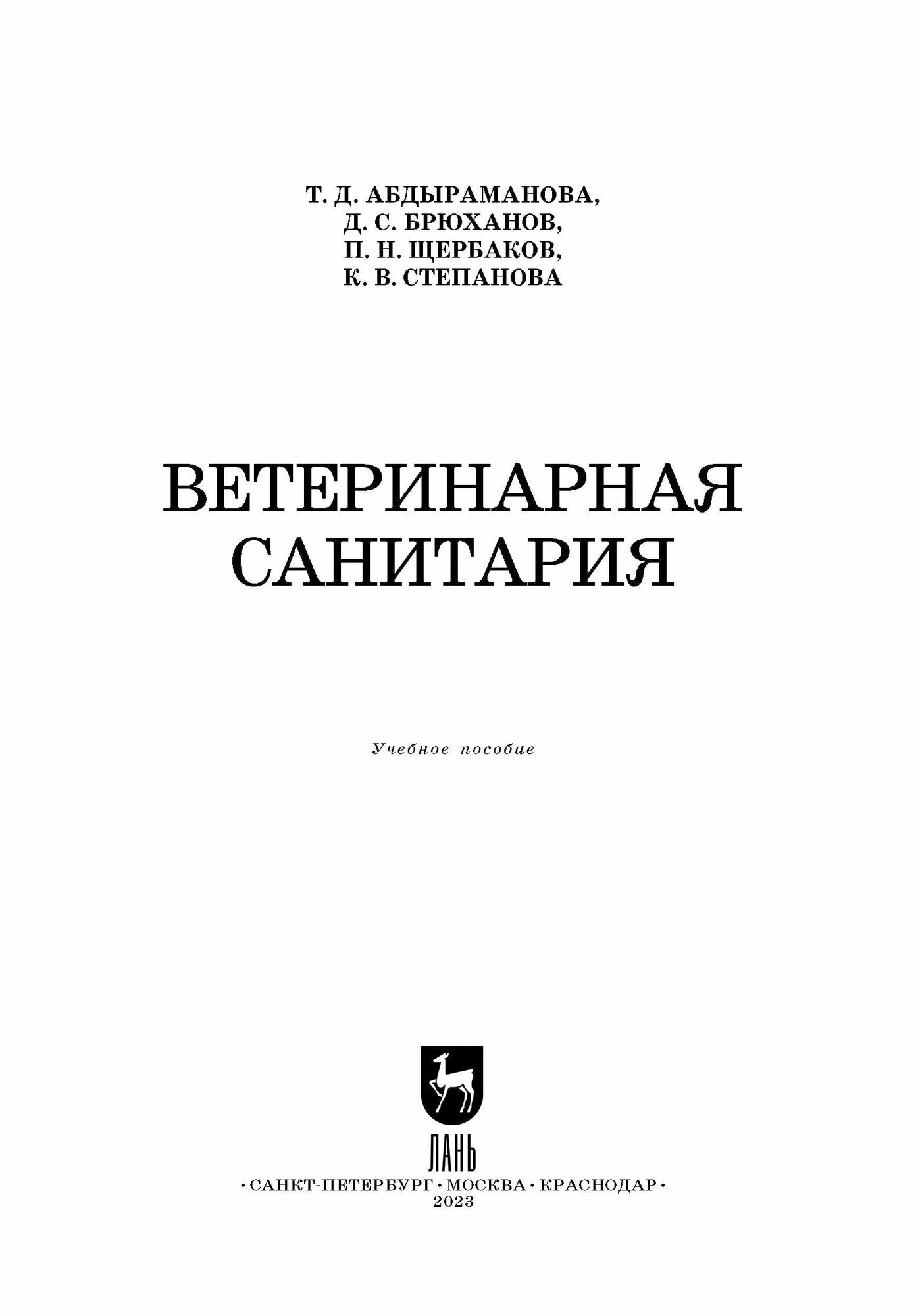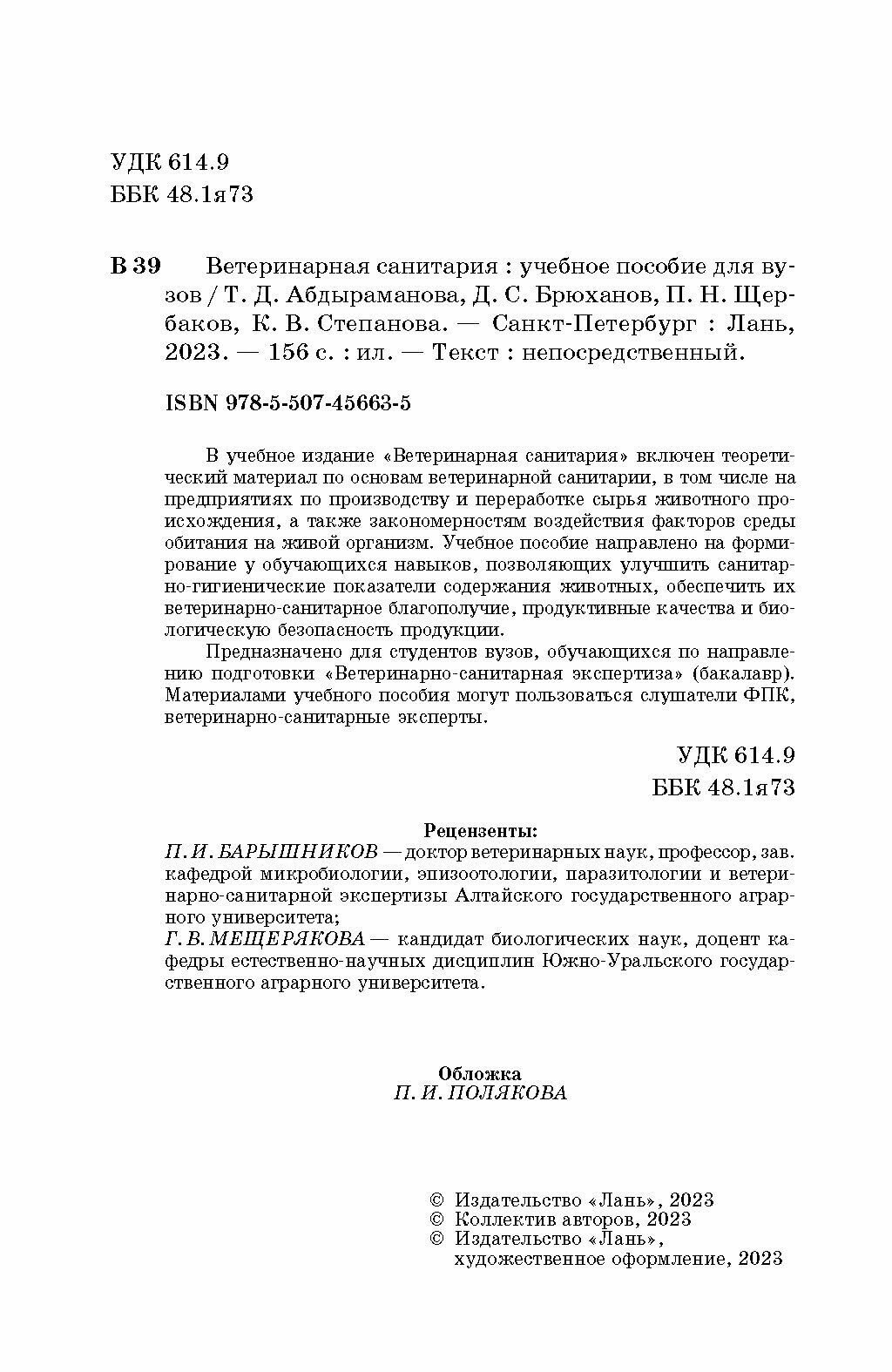 Ветеринарная санитария. Учебное пособие для вузов (Абдыраманова Татьяна Дзепшевна, Щербаков Павел Николаевич, Брюханов Дмитрий Сергеевич); Лань, 2023
