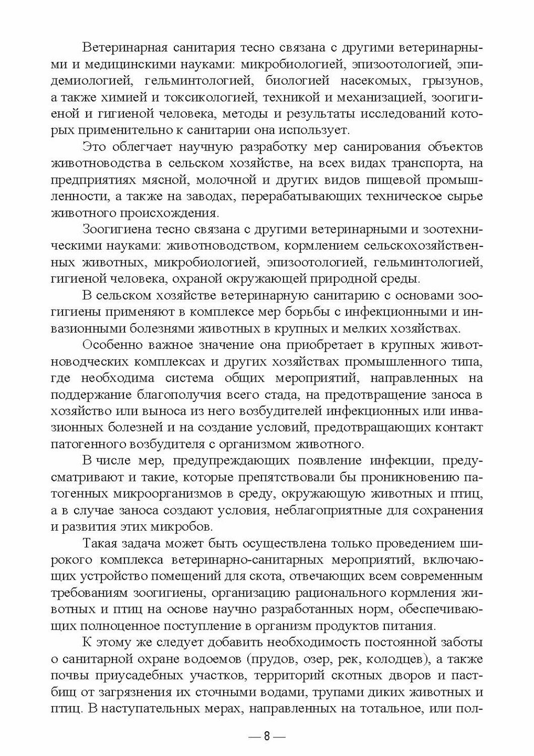 В учебное издание «Ветеринарная санитария» включен теоретический материал по основам ветеринарной санитарии, в том числе на предприятиях по производству и переработке сырья животного происхождения, а также закономерностям воздействия факторов среды обитания на живой организм. Учебное пособие направлено на формирование у обучающихся навыков, позволяющих улучшить санитарно-гигиенические показатели содержания животных, обеспечить их ветеринарно-санитарное благополучие, продуктивные качества и биологическую безопасность продукции.