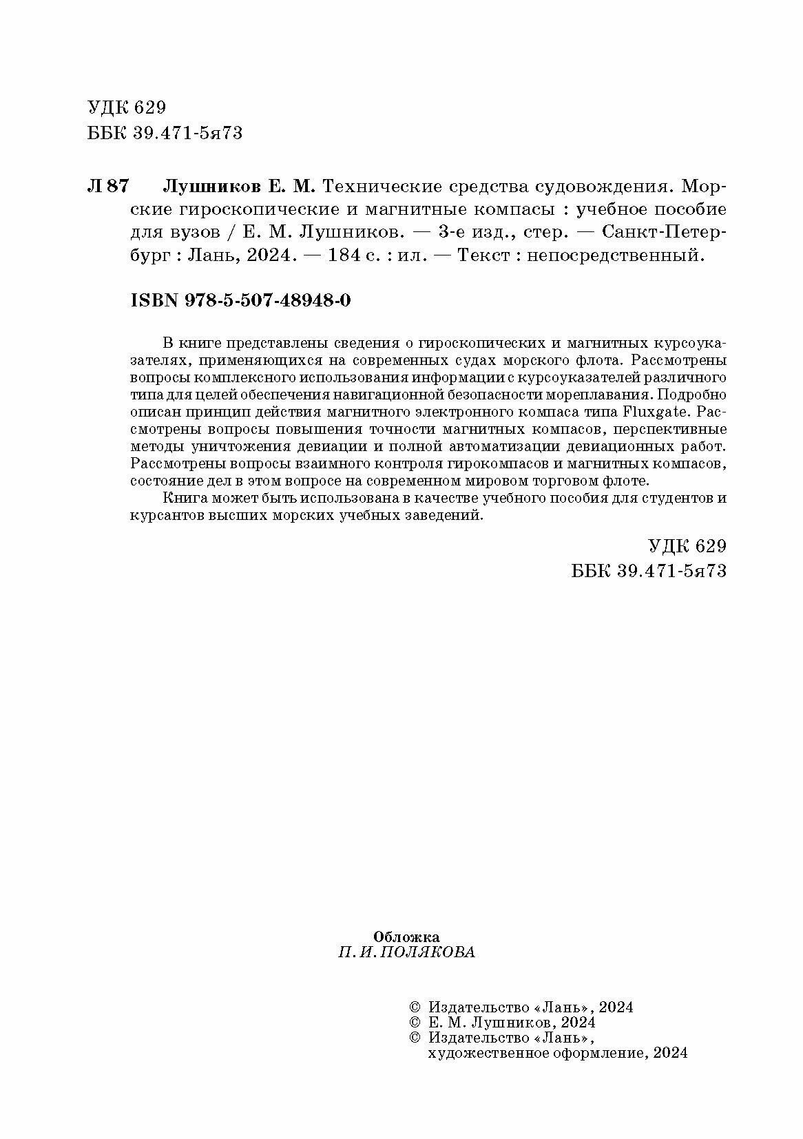 Технические средства судовождения. Морские гироскопические и магнитные компасы. Учебное пособие (Лушников Евгений Михайлович); Лань, 2023