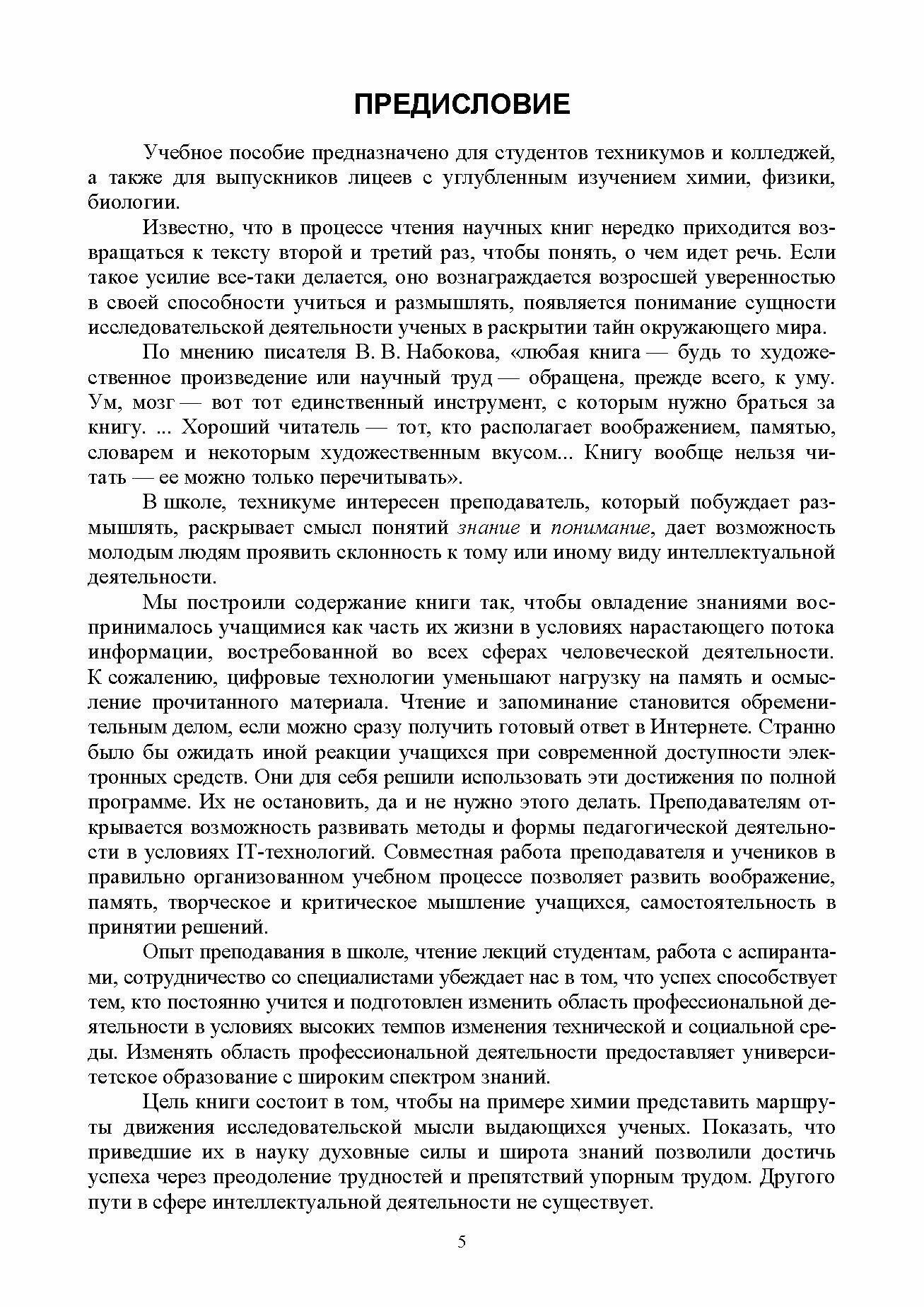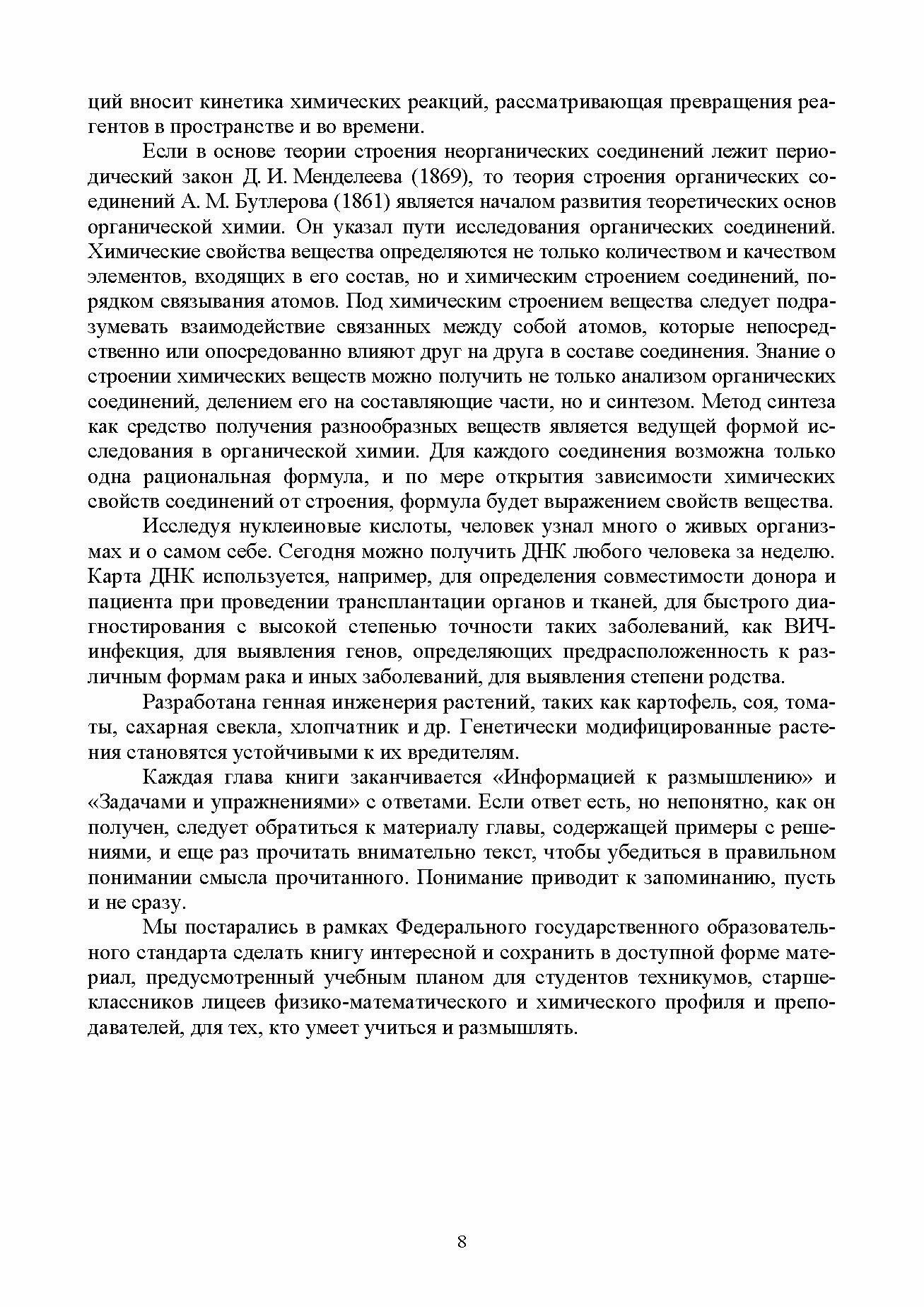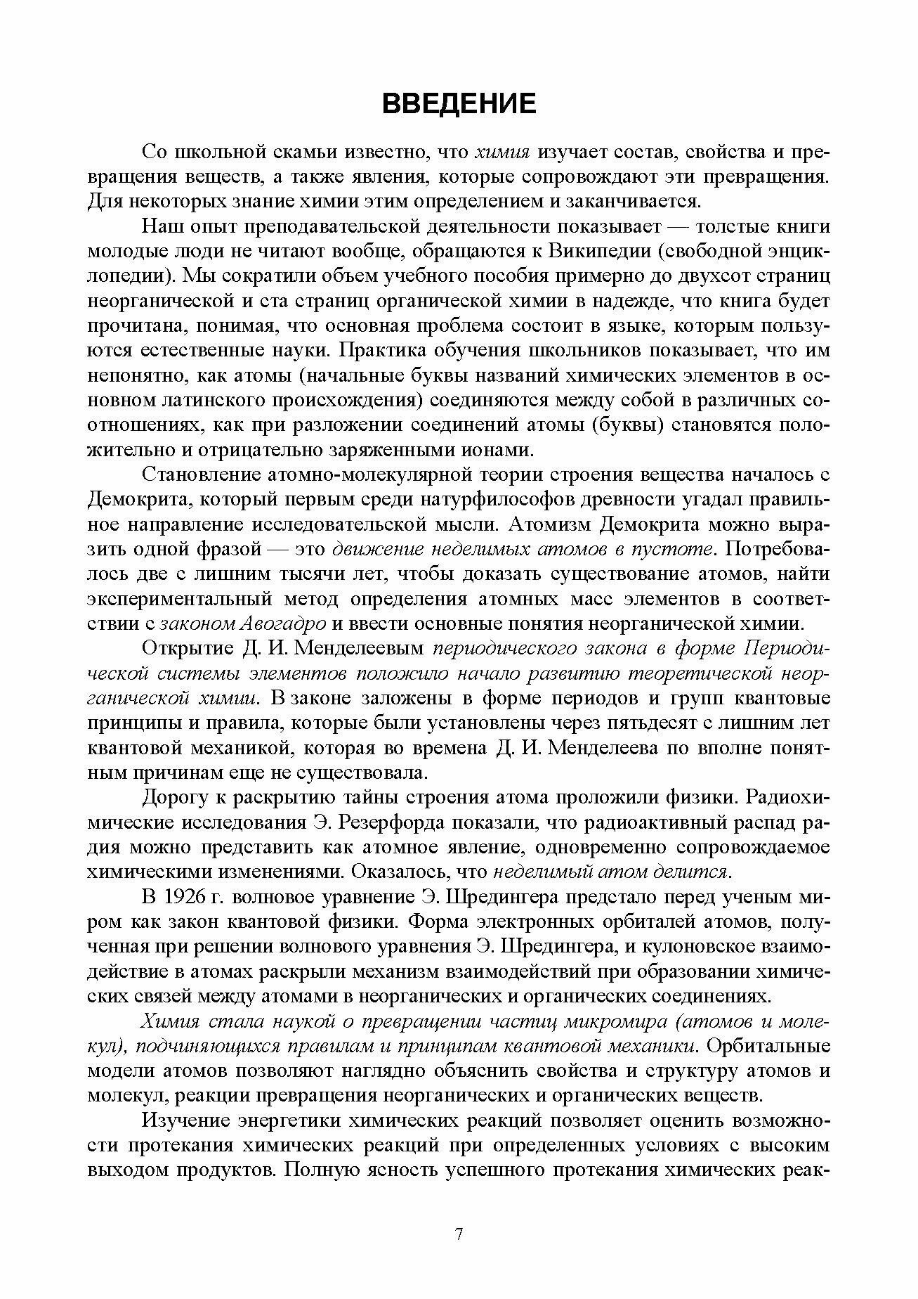 Учебное пособие охватывает сферы человеческой деятельности, связанные с химическими превращениями неорганических и органических веществ от микросистем, представленных атомами и молекулами, до макросистем — твердых, жидких, газообразных веществ, в том числе живых систем, включая человека. Объясняется, что химическая реакция — центральное событие в химии, раскрывающее смысл движения исследовательской мысли ученых — получение веществ с заданными свойствами в соответствии с квантовыми правилами и принципами, с законами химической термодинамики и кинетики химических реакций. С расшифровкой генома живых организмов, в том числе генома человека, появился реальный потенциал для технологий будущего.