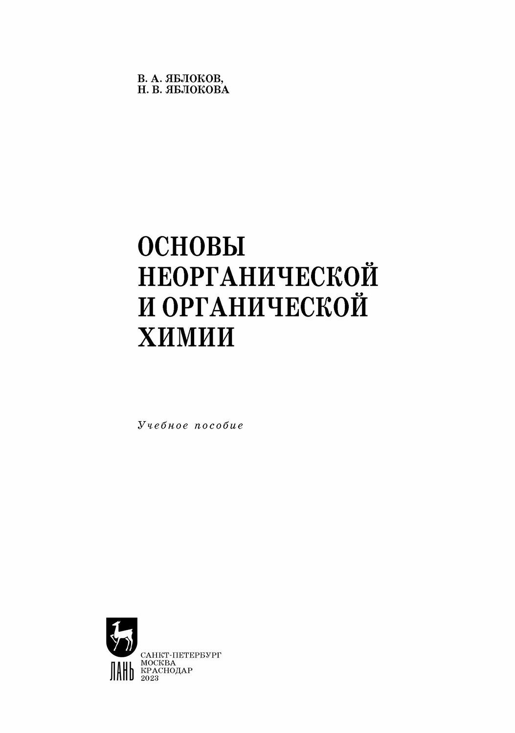 Основы неорганической и органической химии. Учебное пособие для СПО (В. А. Яблоков); Издательство ЛАНЬ, 2024