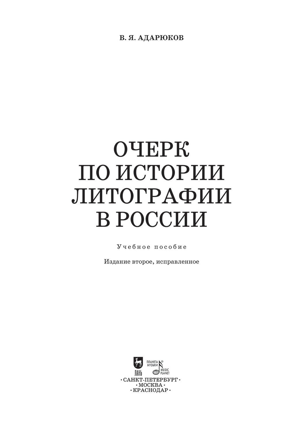 Очерк по истории литографии в России. Учебное пособие (В. Я. Адарюков); Издательство «Планета музыки», 2023