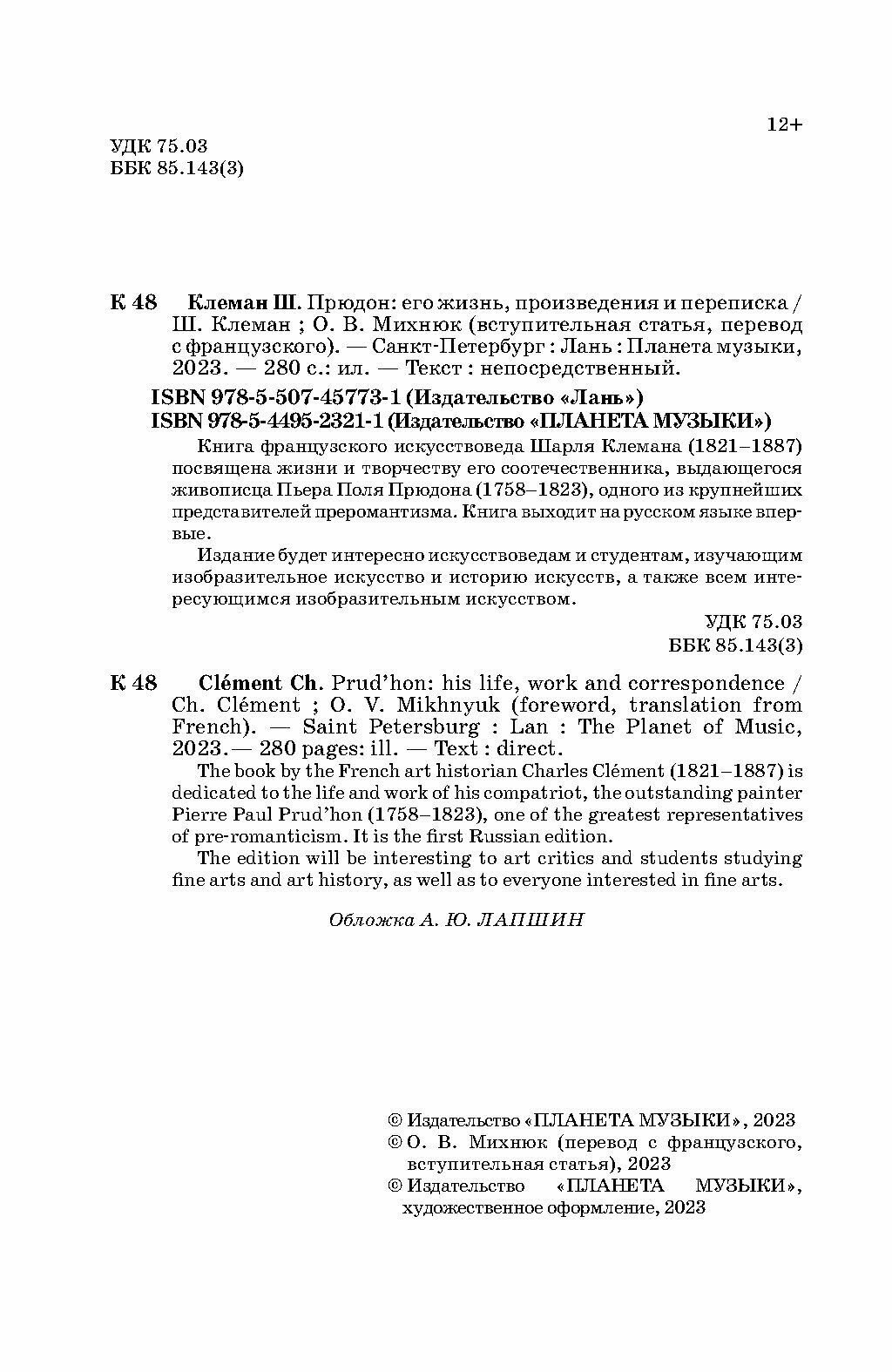Книга французского искусствоведа Шарля Клемана (1821–1887) посвящена жизни и творчеству его соотечественника, выдающегося живописца Пьера Поля Прюдона (1758–1823), одного из крупнейших представителей преромантизма. Книга выходит на русском языке впервые.