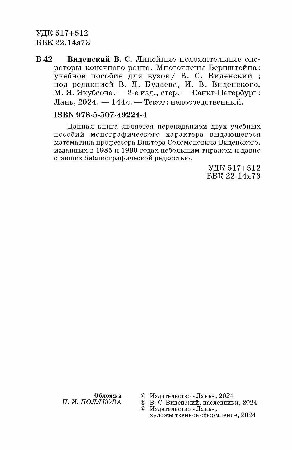 Сервис сравнения цен СкидкаГИД предлагает сравнить цены на товар «Книга: Линейные положительные операторы конечного ранга. Многочлены Бернштейна. Учебное пособие для вузов (Коллектив авторов); Издательство ЛАНЬ, 2023»