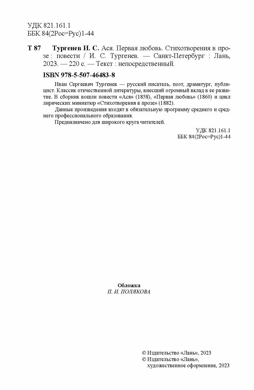 Сервис сравнения цен СкидкаГИД предлагает сравнить цены на товар «Книга: Ася. Первая любовь. Стихотворения в прозе. Повести (Иван Тургенев); Издательство ЛАНЬ, 2023»