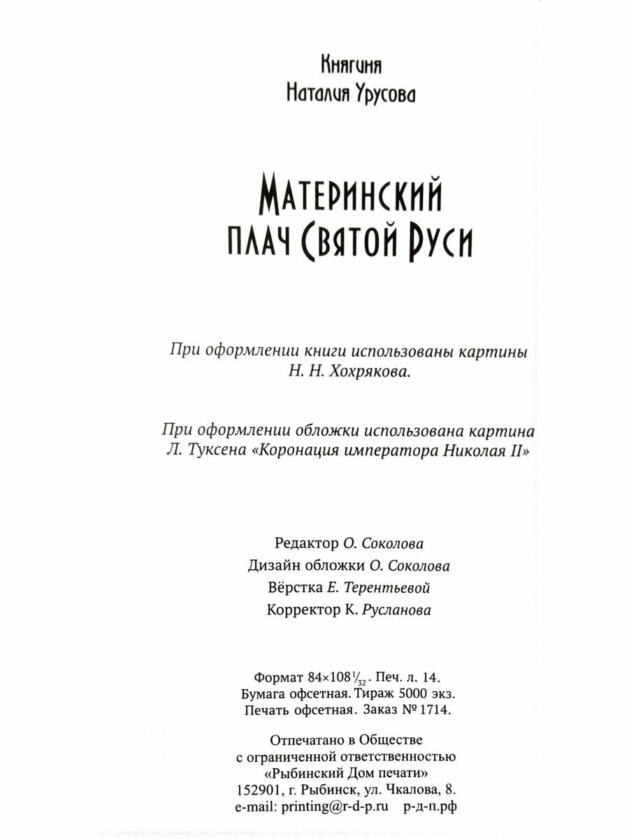 Материнский плач Святой Руси (Урусова Наталия Владимировна); Синопсисъ, 2023