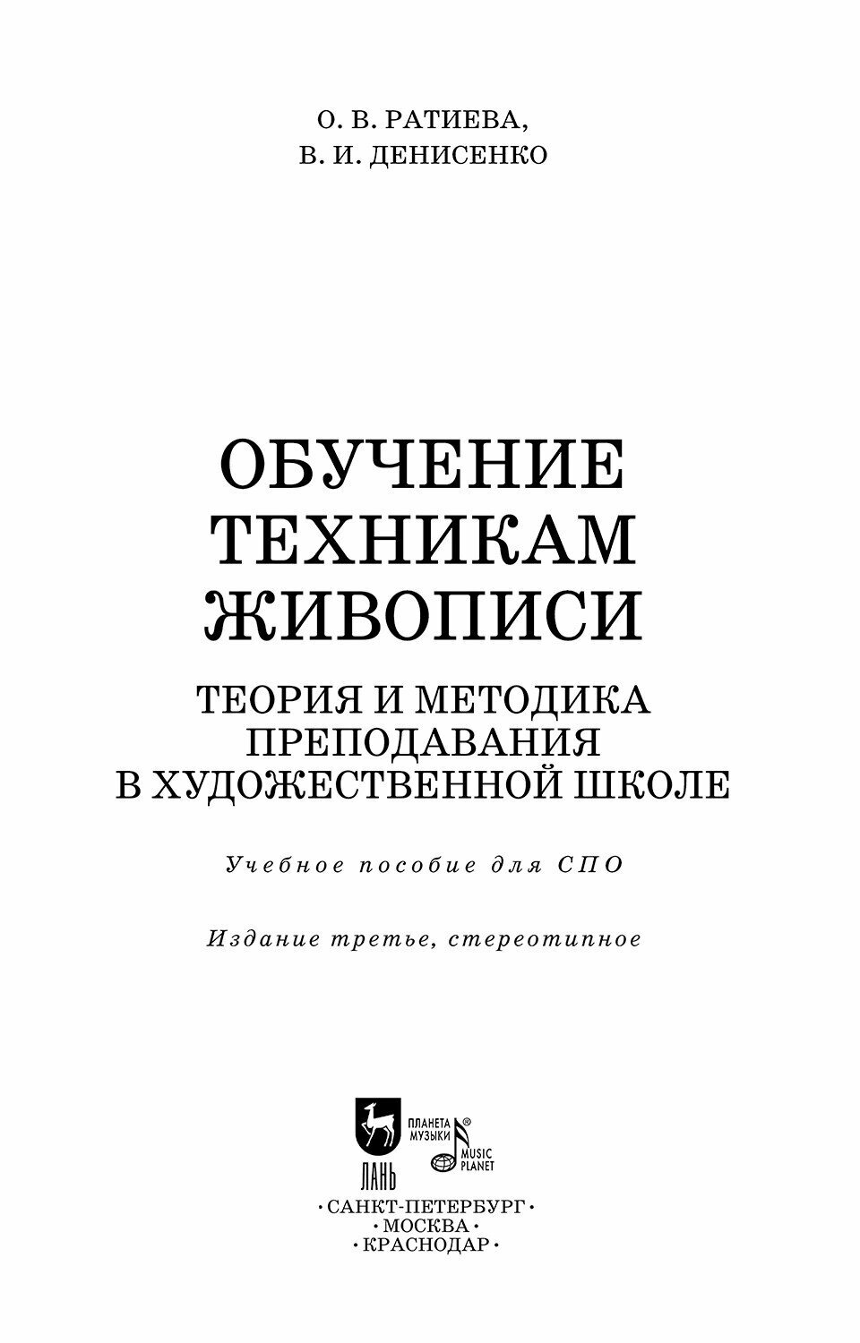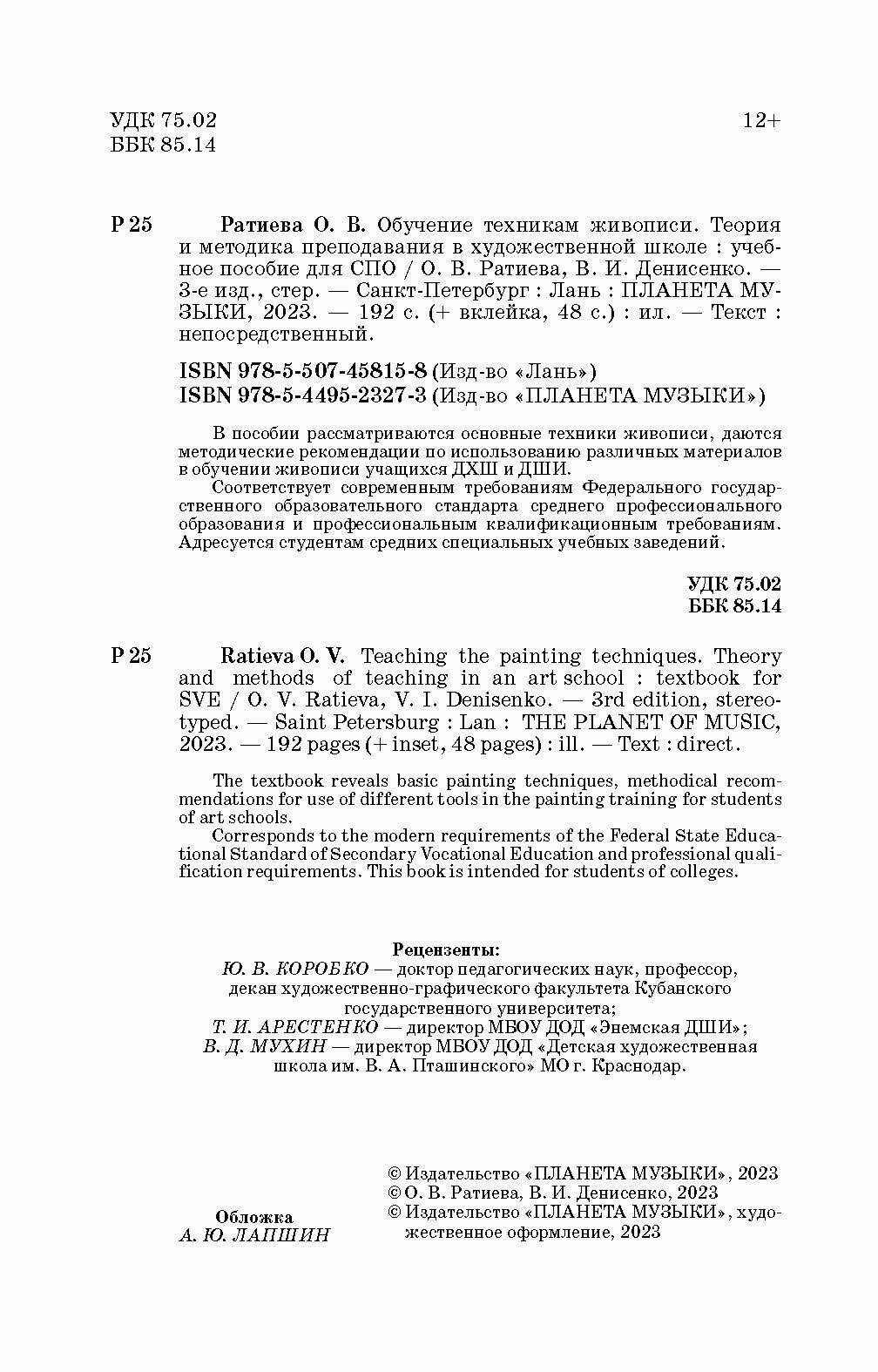 Обучение техникам живописи. Теория и методика преподавания в художественной школе (Ратиева Ольга Викторовна, Денисенко Виктор Иванович); Планета музыки, 2023