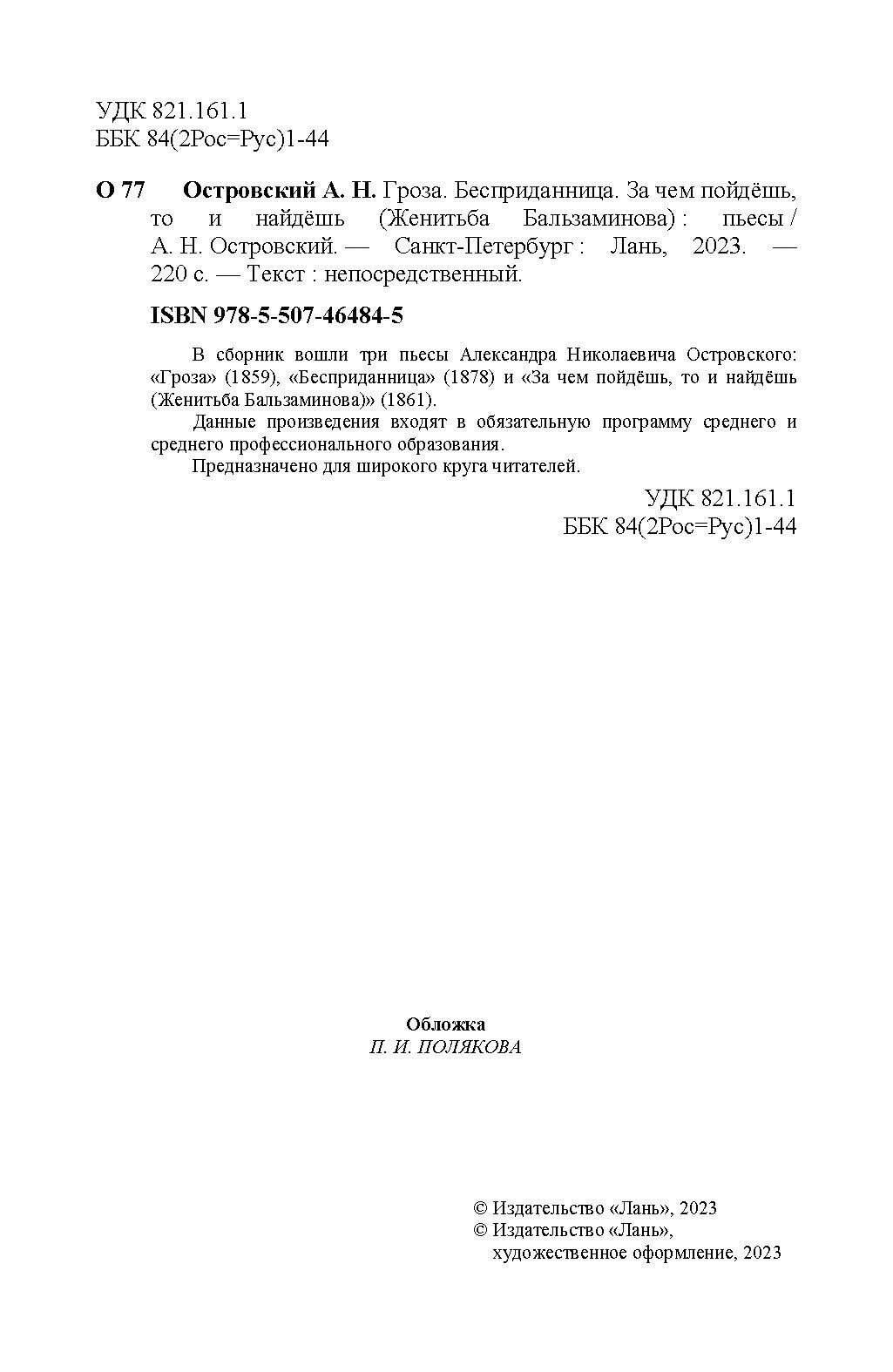 Сервис сравнения цен СкидкаГИД предлагает сравнить цены на товар «Книга: Гроза. Бесприданница. За чем пойдёшьто и найдёшь. Пьесы (Александр Островский); Издательство ЛАНЬ, 2023»