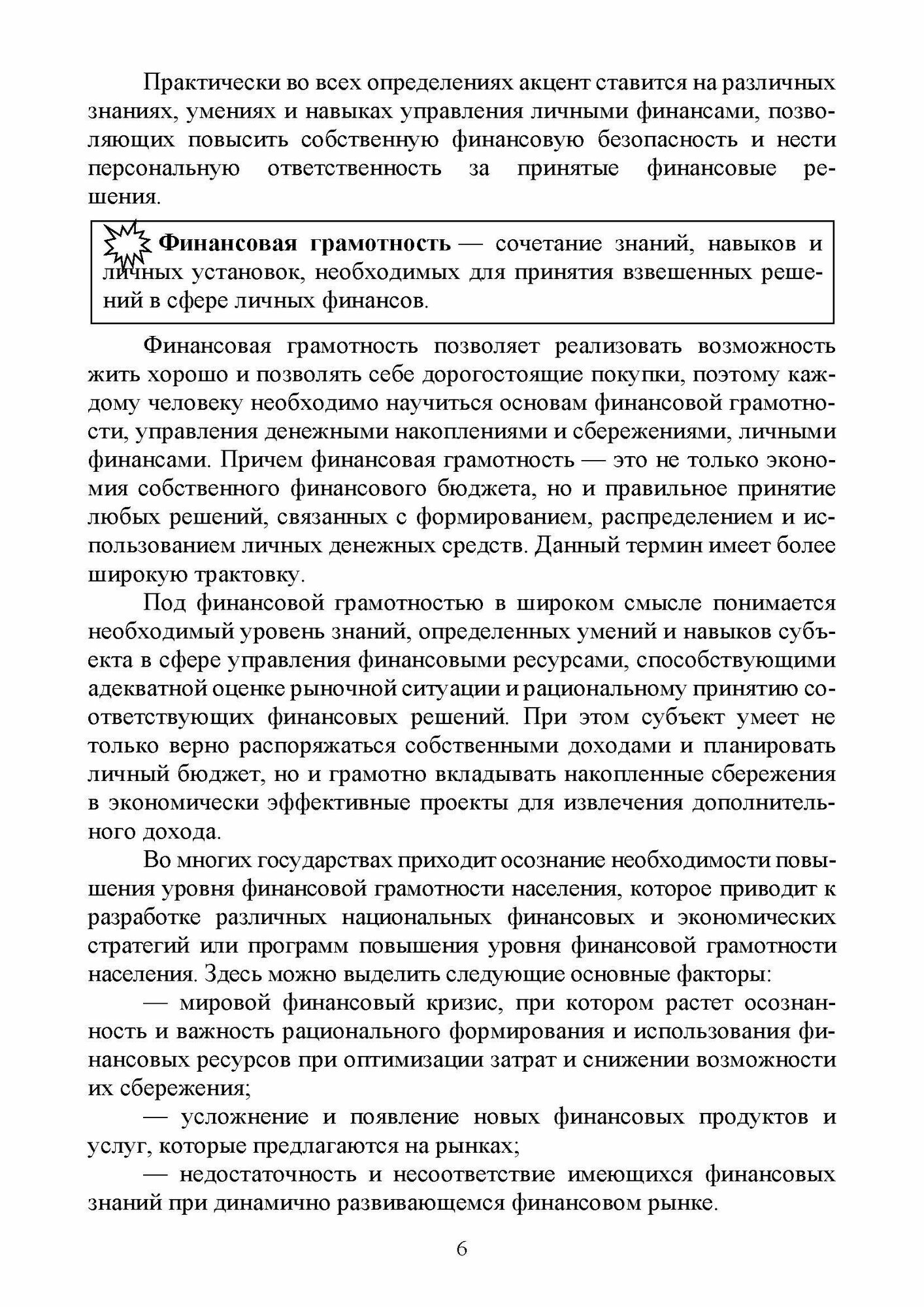 Учебник посвящен вопросам повышения финансовой грамотности населения в современных условиях и направлен на формирование навыков и компетенций финансово ответственного поведения и обеспечения личной финансовой безопасности и устойчивости. Содержание учебника включает тематические направления, наиболее актуальные в условиях расширения финансовых услуг, усложнения и появления новых финансовых инструментов, роста финансового мошенничества. Контрольные вопросы и тестовые задания, предлагаемые к каждой главе, способствуют закреплению знаний в ходе самостоятельной работы обучающихся.
