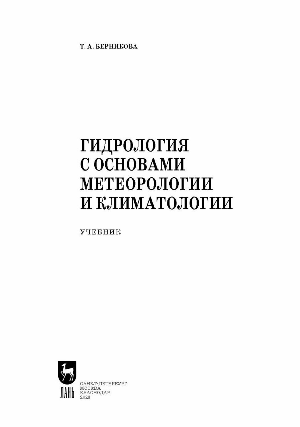 Гидрология с основами метеорологии и климатологии. Учебник для СПО (Т. А. Берникова); Лань, 2023
