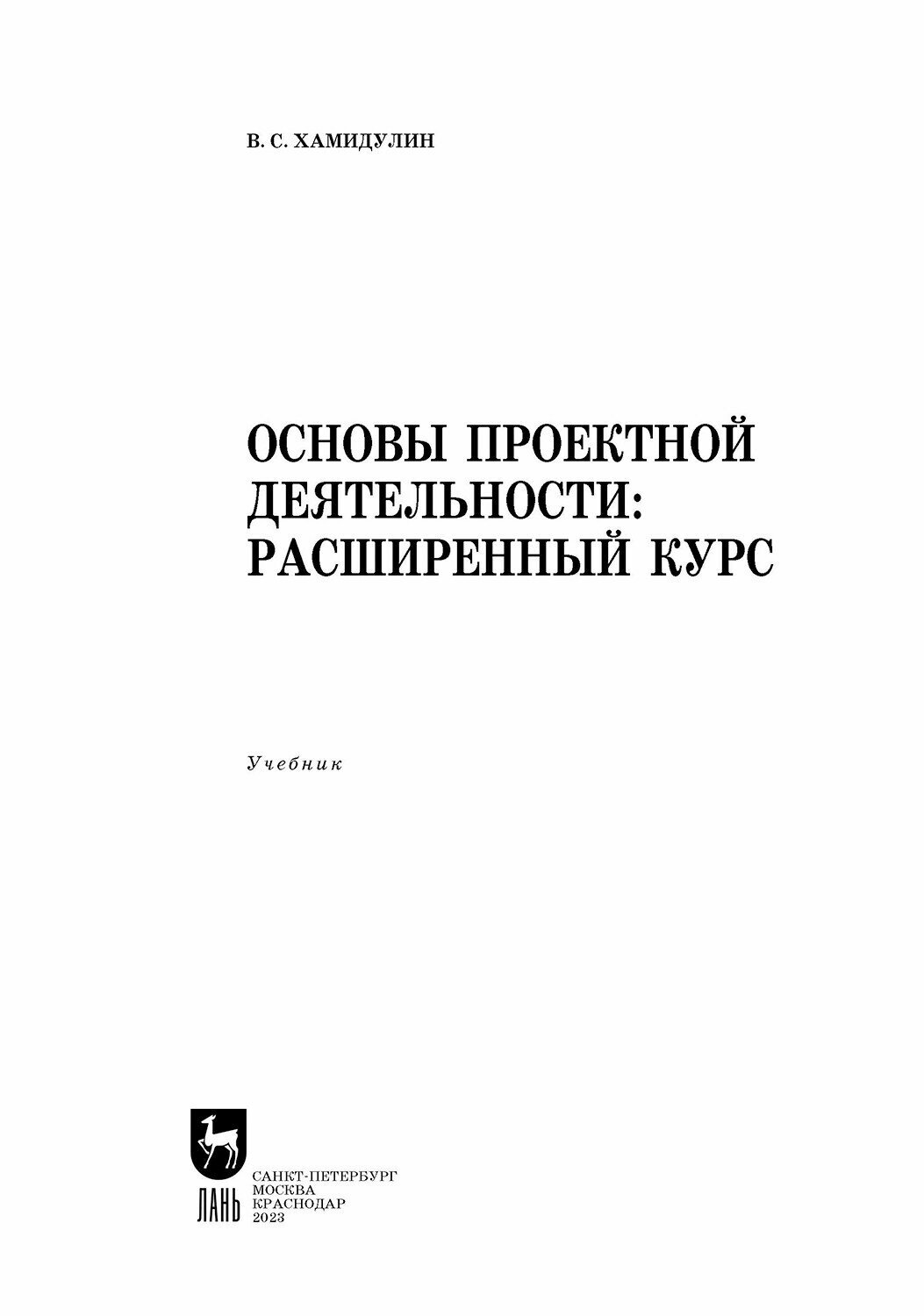 Основы проектной деятельности. Расширенный курс. Учебник для вузов (Хамидулин Владислав Саидович); Лань, 2023