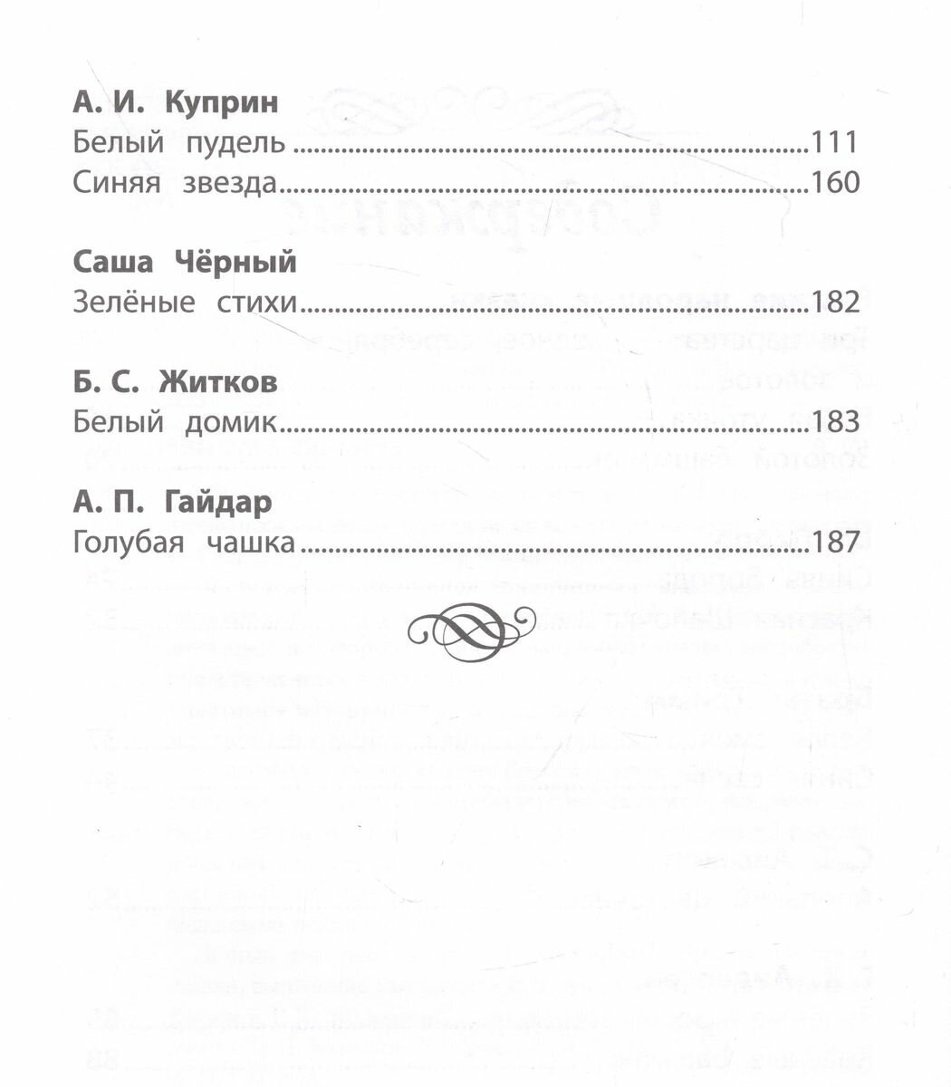 Юный читатель найдёт тут русские народные и авторские сказки, вышедшие из-под пера С.Т. Аксакова, Ш. Перро, братьев Гримм и Г. X. Андерсена, а также стихи Саши Чёрного и истории от Д. Н. Мамина-Сибиряка, А. И. Куприна, Б. С. Житкова и А. П. Гайдара.