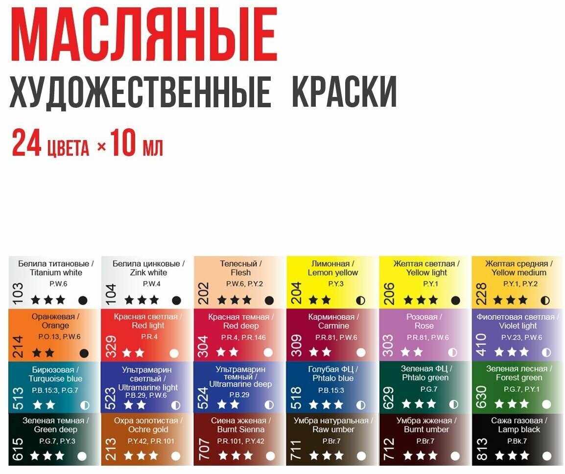 | Состав набора | краска масляная - 24 шт |