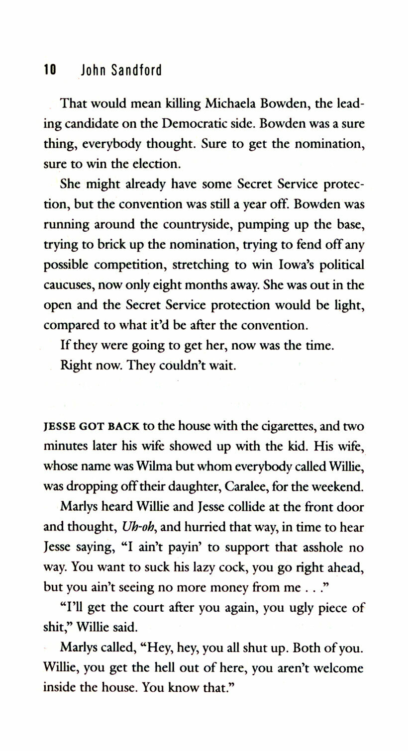 After the events in Gathering Prey, Lucas Davenport finds himself in a very unusual situation—no longer employed by the Minnesota BCA. His friend the governor is just cranking up a presidential campaign, though, and he invites Lucas to come along as part of his campaign staff. “Should be fun!” he says, and it kind of is—until they find they have a shadow: an armed man intent on killing the governor…and anyone who gets in the way.
