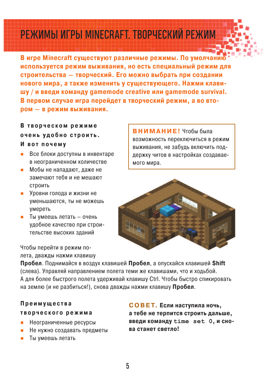 Строительство – главный аспект Minecraft. Игра предоставляет множество способов раскрыть свой творческий потенциал, и данное руководство научит вас ими пользоваться. Вы узнаете, как лучше всего находить место для постройки, выбирать правильные материалы и декоративные элементы, строить под водой и многое другое. А в конце руководства вас ждут готовые примеры красивых и функциональных построек и подробные инструкции по их созданию. Разберется даже новичок!