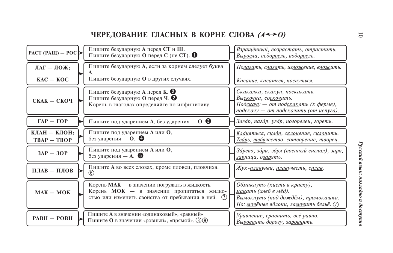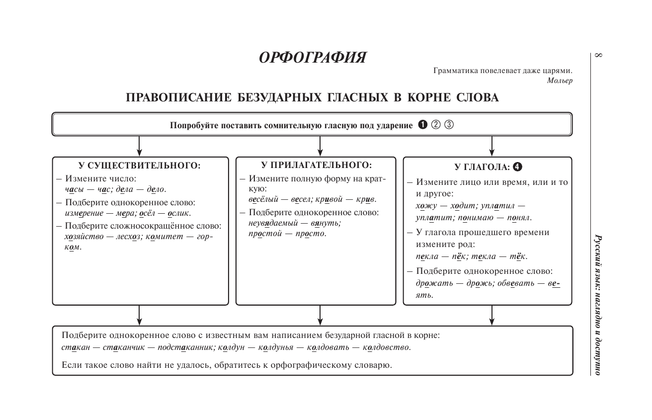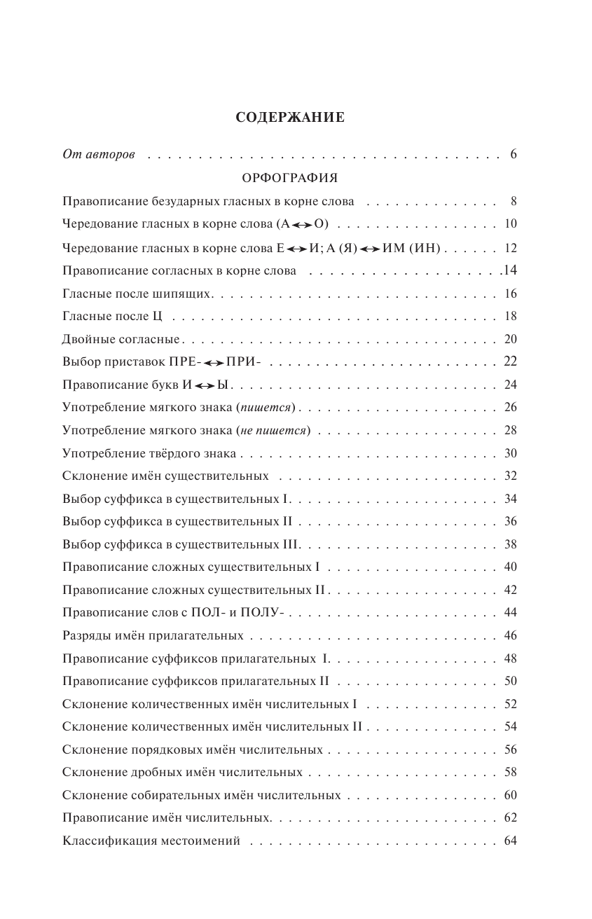 В книге компактно и последовательно изложены основные правила современной русской орфографии и пунктуации. Информация представлена в наглядных схемах и таблицах, что позволит лучше понять и усвоить её. Кроме того, с помощью пособия можно быстро найти любую тему, систематизировать и расширить имеющиеся языковые знания и навыки. В конце книги приводится расширенный словарь орфографических и орфоэпических сложностей, в который включены слова, наиболее часто вызывающие трудности у учащихся на тестированиях и диктантах. Пособие окажет существенную помощь в подготовке к ЕГЭ и ОГЭ, прочим формам контроля и урокам.