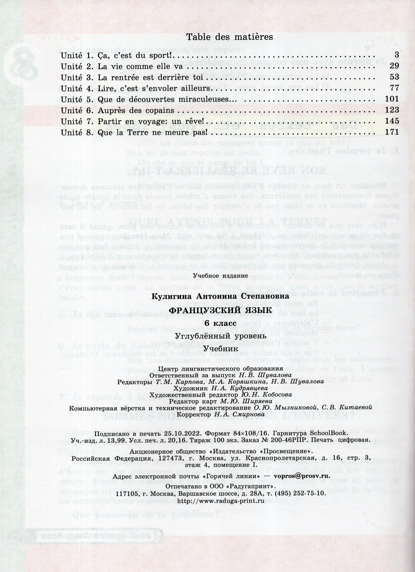 Французский язык: 6 класс: углубленный уровень: учебник (Кулигина Антонина Степановна); Просвещение, 2023