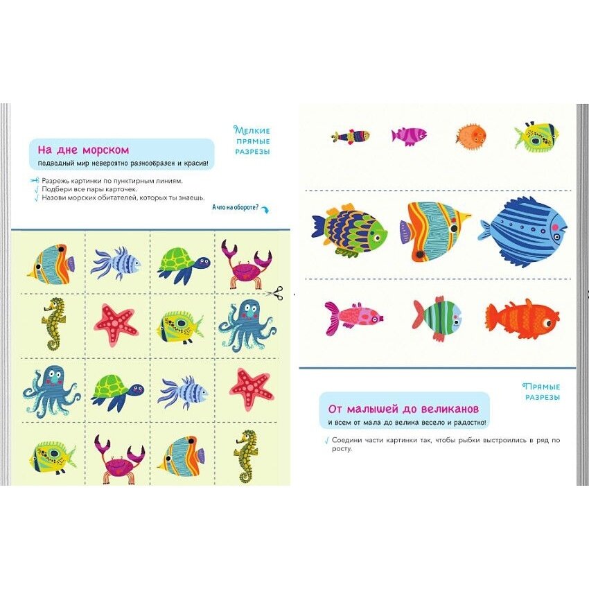 Вы думаете, вырезать из бумаги легко? Да нет же! Для ребёнка это сложный навык. Он требует хорошо развитой мелкой моторики. Ведь большой, указательный и средний пальцы должны работать дружно, причём совершенно отдельно от безымянного и мизинца. А это сложный процесс для нескольких отделов головного мозга! Тут конечно же без тренировки не обойтись. Но вырезать просто линии, квадраты, круги, ломаные линии для непоседы малыша - довольно скучное занятие. Куда интереснее превратить вырезание в весёлую и полезную игру.