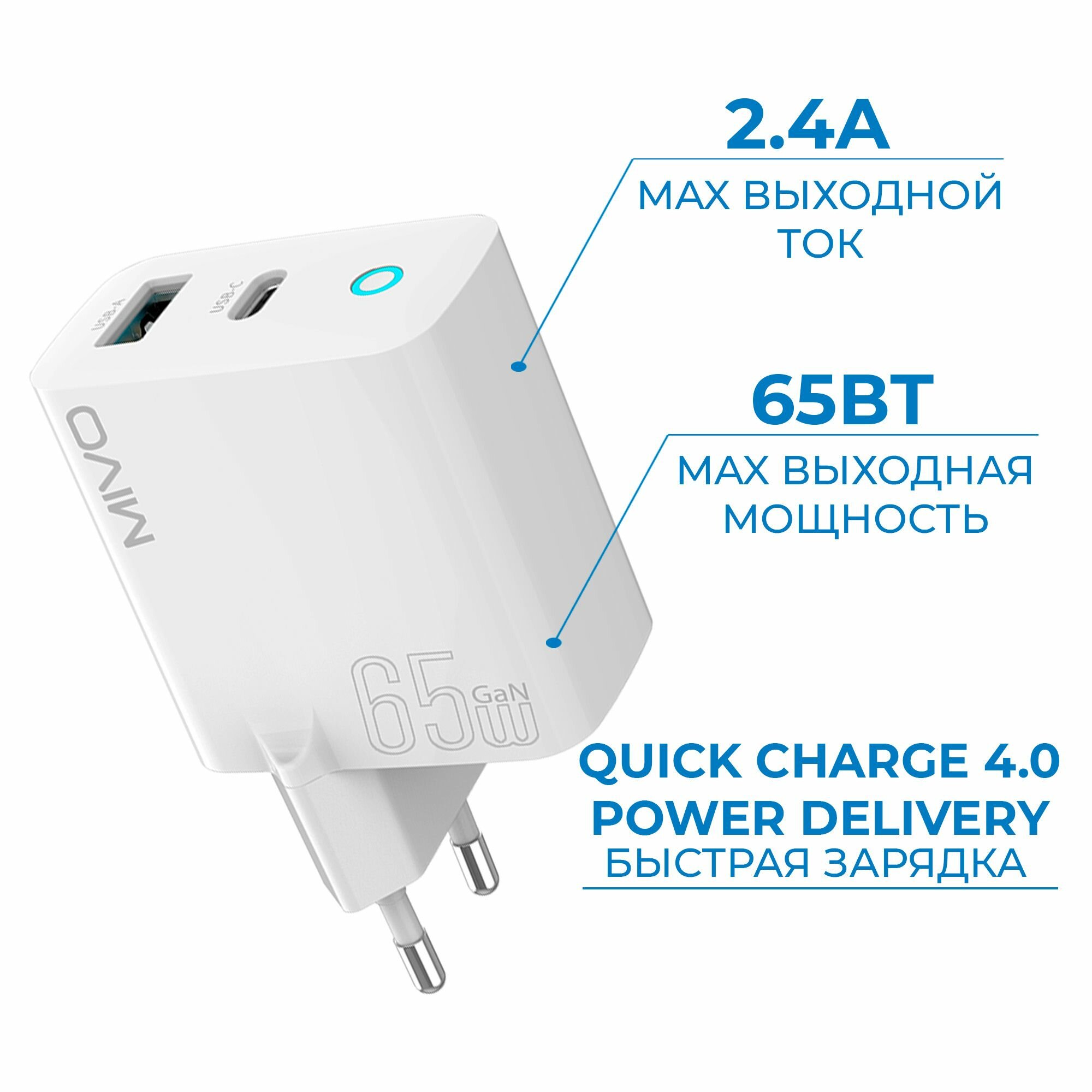 Mivo - компактное и удобное сетевое зарядное устройство с быстрой зарядкой Quick Charge 3.0 и PD. С его помощью можно быстро и эффективно зарядить различные устройства, такие как мобильные телефоны, смартфоны, планшеты, фотоаппараты и видеокамеры. Оно оснащено двумя USB-входами, Type-C и USB A, позволяя одновременно заряжать несколько устройств. С мощностью 65W и поддержкой зарядки от сети 220 В, это зарядное устройство идеально подходит для использования в путешествиях и в европейских розетках стандарта 220 В. Данное зарядное устройство обеспечивает быструю и надежную зарядку, что делает его незаменимым аксессуаром для поддержания энергии в ваших устройствах в любой ситуации.
