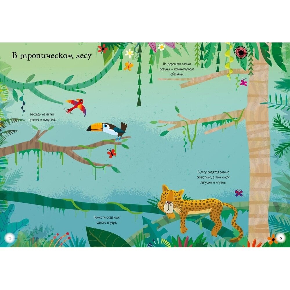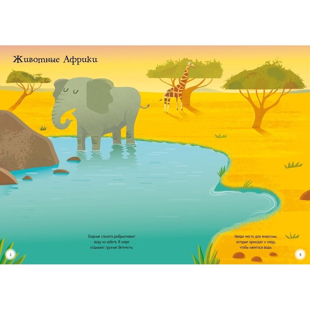 Посмотри, какие животные обитают в лесах, жаркой саванне, среди снега и льдов, в пустыне и океане. Все они очень разные! Одни прекрасно плавают и ныряют, другие лазают по деревьям, третьи – умело прячутся. Найди место для каждого животного.