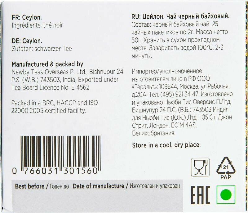 Сервис сравнения цен СкидкаГИД предлагает сравнить цены на товар «Чай Newby Ceylon черный классический 25пак. карт/уп.»