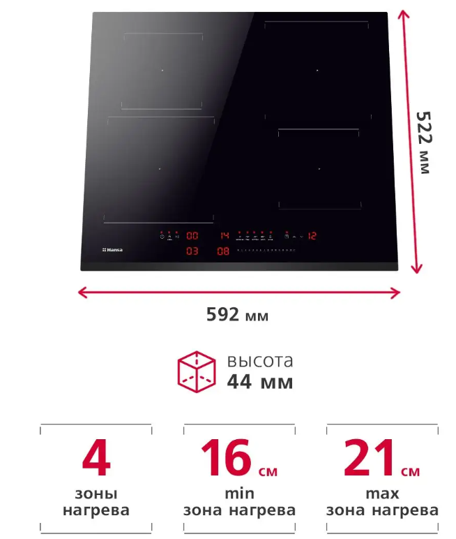 Индукционная варочная поверхность Hansa из новой линейки Induction 3.0 — идеальное сочетание функциональности и стиля. Технология LowDutyCycle обеспечивает плавный и равномерный нагрев без эффекта включения и выключения. А с улучшенной конструкцией SlimHob PRO, устройство с легкостью можно вписать в любой кухонный интерьер. Высота встраивания панели всего 44 мм, ее можно установить в столешницу 12 мм над выдвижными ящиками или 28 мм над духовым шкафом, без необходимости в специальных вентиляционных зазорах. Больше не нужно переживать о качестве блюд, если вы используете нестандартную посуду – благодаря функции Автомост поверхность сама распознает размер и форму кастрюли или сковородки, автоматически регулируя зону нагрева под нее. Модель также оснащена 4 температурными режимами для различных типов блюд: Melt (40°C), Simmer (70°C), Cook (90°C), а также дополнительным режимом для гриля Grill (200°C). Функция Stop&Go; позволит приостановить работу конфорки на короткое время, если вам нужно отлучиться. Режим Booster обеспечивает быстрое и эффективное приготовления блюд, кратковременно увеличивая мощность нагрева на 50%. Кроме того, индукционная поверхность обладает низким уровнем шума, даже при работе зон нагрева на максимальной мощности, благодаря системе охлаждения LowNoise.
