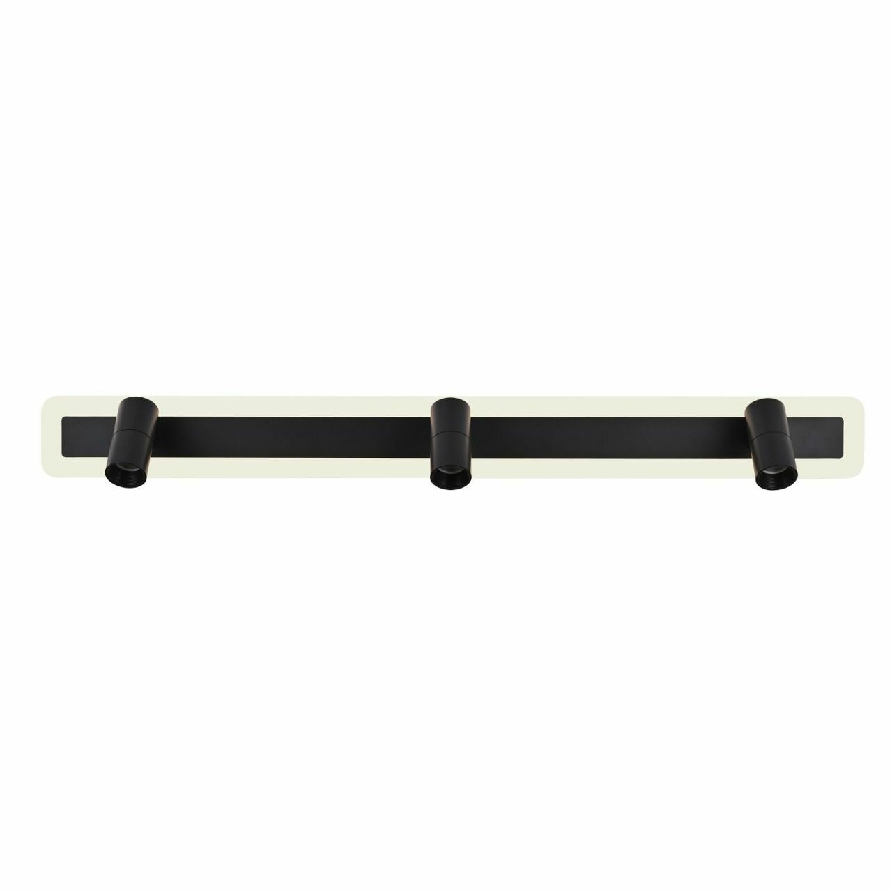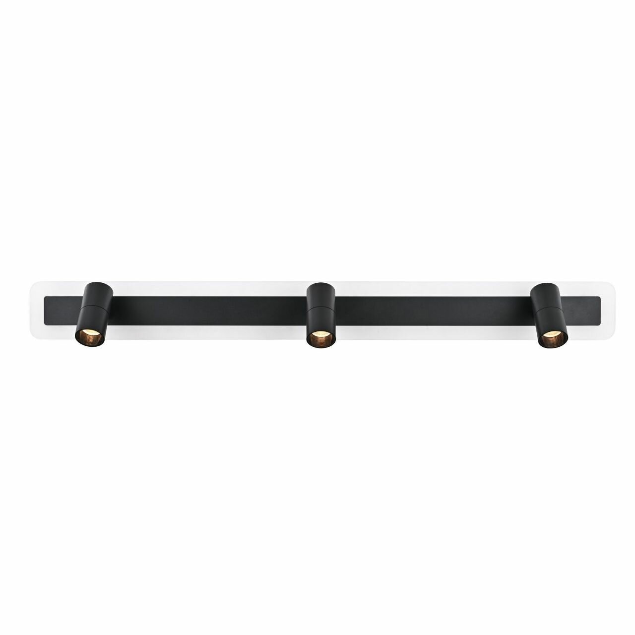 Настенно-потолочный светильник черного цвета с двумя источниками света - LED по периметру каркаса и поворотные споты. Пульт управления цветом и мощностью света в комплекте.