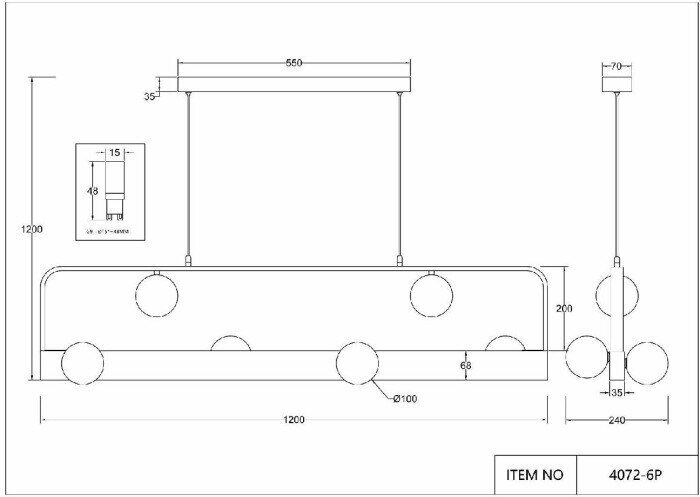 | Длина подвеса, мм | 1000 |