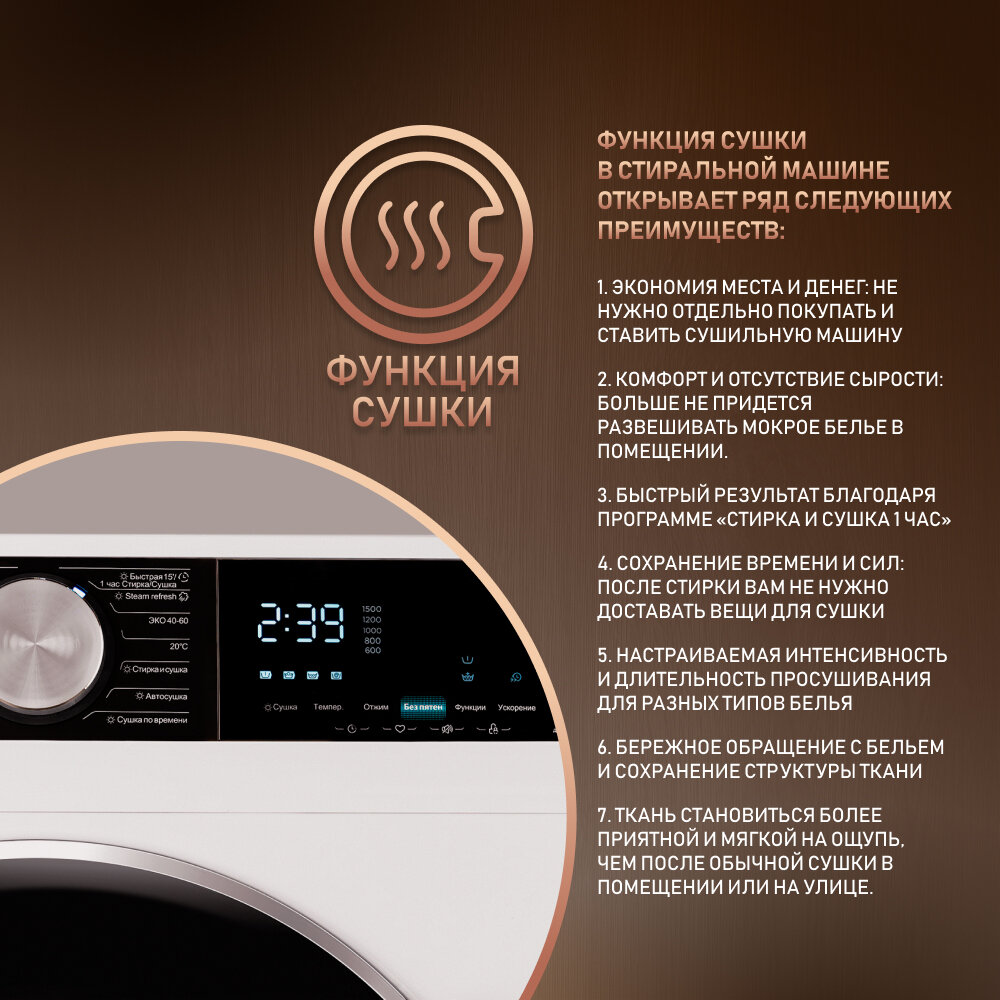 | Режимы сушки | по времени, стирка+сушка, автосушка |