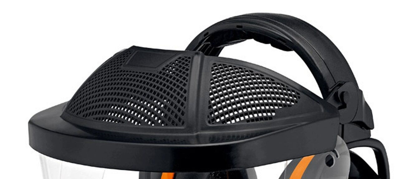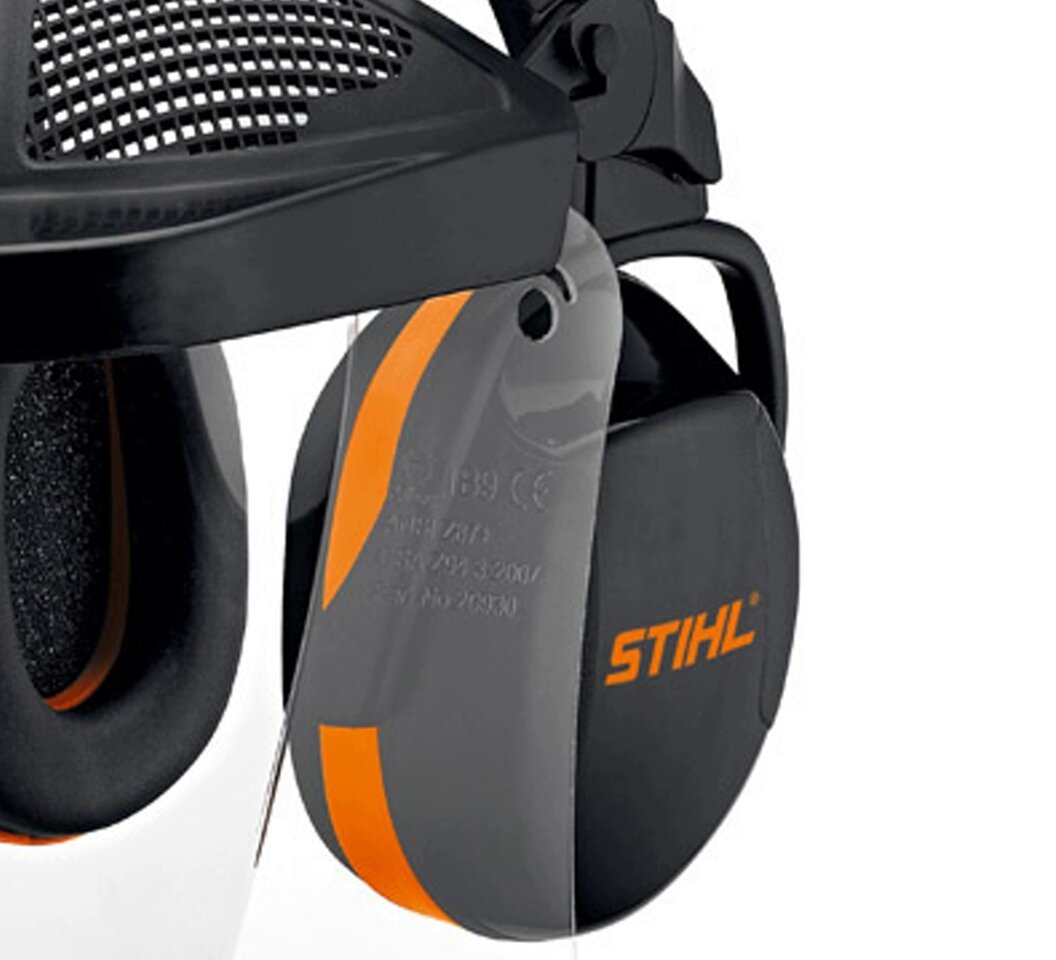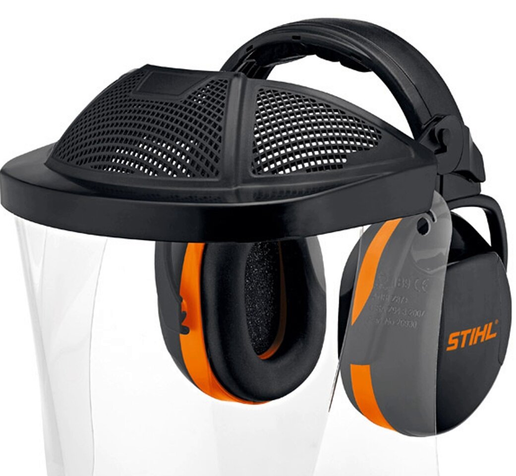 Защита лица и слуха с пластиковым щитком Stihl - дуга с мягкой прокладкой и наушниками, увеличенный щиток. Внутреннее стекло с покрытием против запотевания. Дополнительная защита лба.