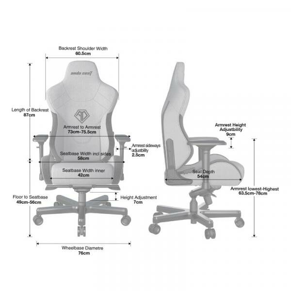 Кресло игровое Anda Seat T-Pro 2 цвет чёрный размер XL (180кг) материал ткань (модель AD12XL) AndaSeat (AD12XLLA-01-B-F)