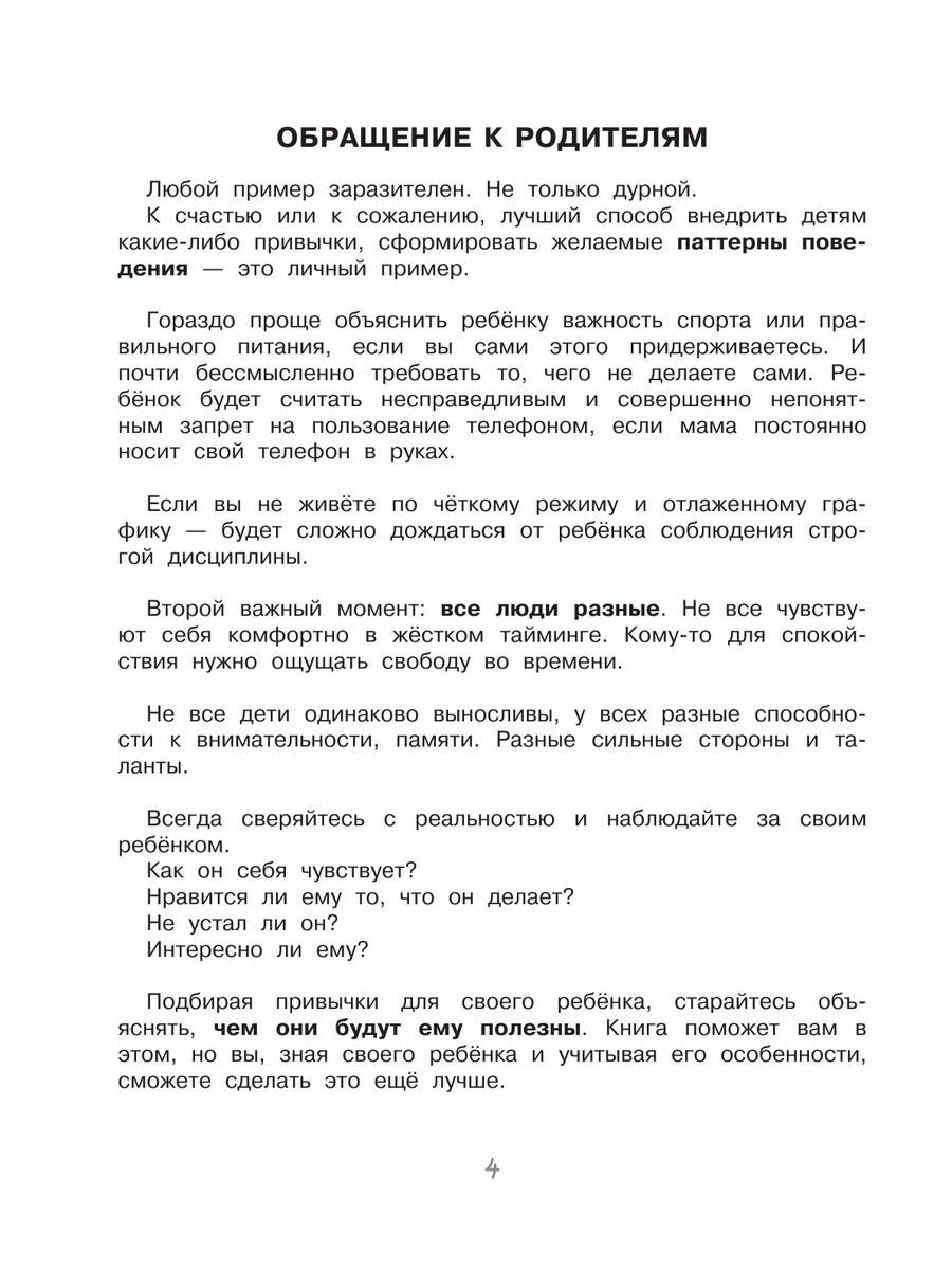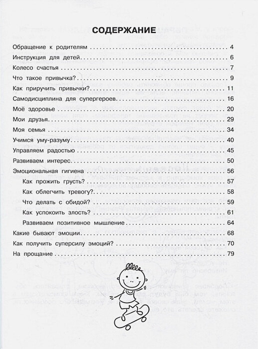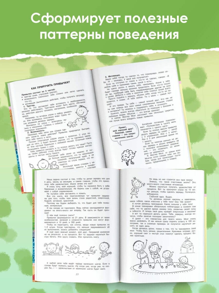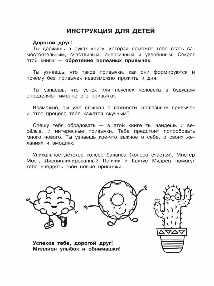 Путь к большому успеху начинается с маленьких привычек! Они автоматизируют наши действия, упорядочивают жизнь. В результате рутинные обязанности выполняются сами собой как по волшебству. Освобождаются энергетические ресурсы мозга для достижения важных целей, для обучения новому, для творчества и саморазвития. В этом тренажёре лайф-коуч Наталия Иванова обучает эффективным приёмам развития эмоционально-волевой сферы. Ребёнку будет интересно самому выбирать привычки и каждый день отмечать результат своих усилий в трекере, заполнять «колесо счастья». Легко и просто ваш сын или дочка приобретут такие важные черты характера, как пунктуальность, организованность, чистоплотность и другие. Задача родителей — поддерживать и вдохновлять! Важно начать заниматься как можно раньше. Ведь многие привычки родом из детства, мы проносим их через всю жизнь. И место полезной привычки может занять вредная.
