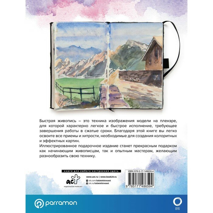 Красивое подарочное издание для любителей живописи. Освещает полезную тему, помогает обрести необходимые навыки для быстрого рисования картин на пленере. Есть дополнительные мастериалы, такие как видео, фото, пошаговые инструкции, которые можно посмотреть на своём телефоне, отсканировав кьюар код на одной из страниц. Такой подход добавляет разнообразие в обучение, а видео-уроки будут более наглядными нежели фото-инструкции. Отличный подарок для художника!