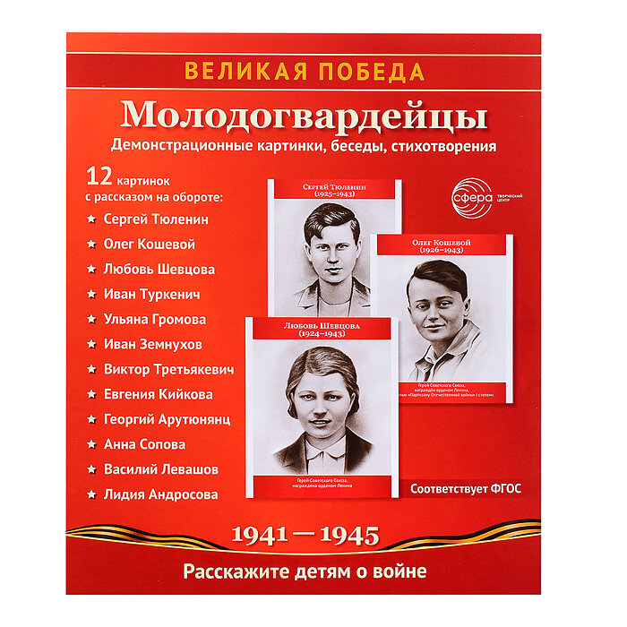 Великая Победа. Молодогвардейцы. 12 демонстрационных картинок с текстом на обороте (Цветкова Татьяна); Творческий центр Сфера Издательство, 2023