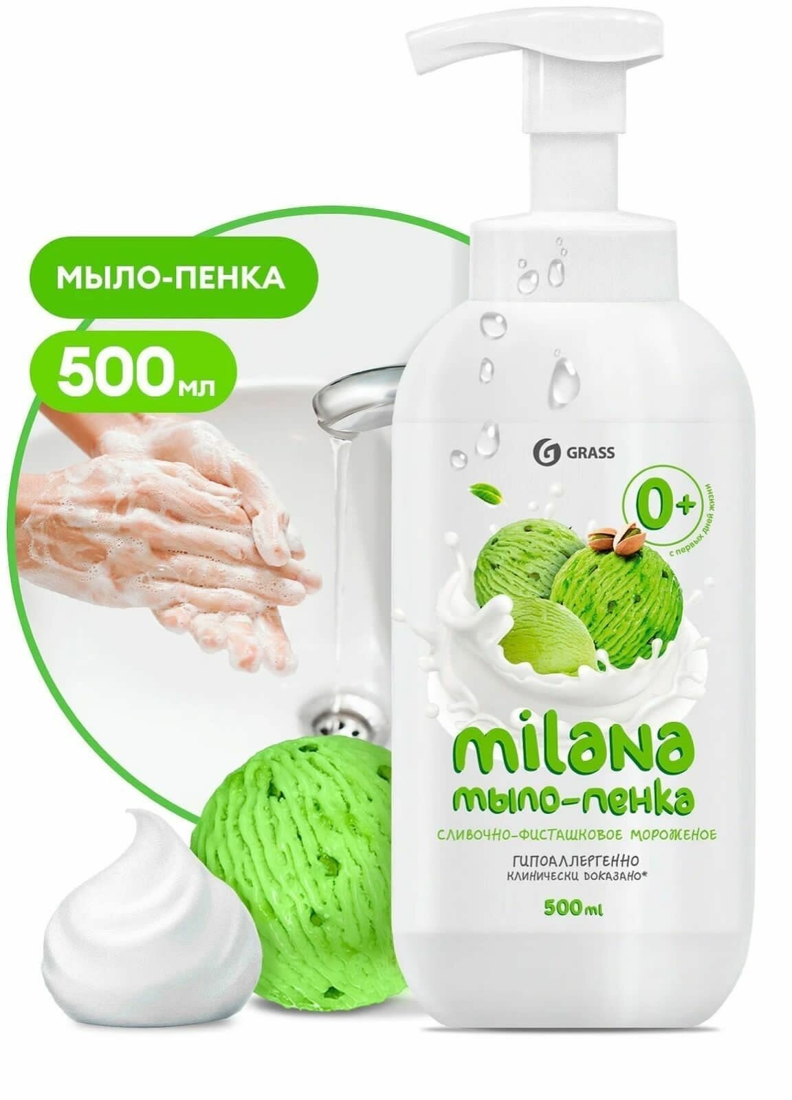 Мыло-пенка жидкое Grass Milana Сливочно-фисташковое мороженое 500мл ТД ГраСС