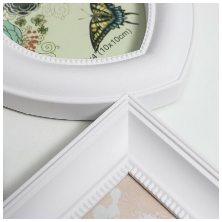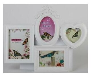 Мультирамка пластик на 4 фото (1/13х18 см, 2/10х15 см, 1/10х10 см), цв. белый. Решили поздравить свою вторую половинку, друга, коллегу или близкого вам человека? Представляем фоторамку-коллаж — это универсальный и неповторимый подарок, уместный для любого повода. Коллаж на стену необязательно кому-то дарить, ведь вы можете порадовать покупкой и самого себя. Просто сделайте подборку из лучших и любимых фотографий и разместите их в фоторамках. Создавайте тематические серии из фото и периодически их менять. Фоторамка-коллаж — это отличная возможность не ограничиваться вставкой одного фото, а разместить можно одновременно несколько дорогих сердцу снимков. Защитный экран из пластика.
