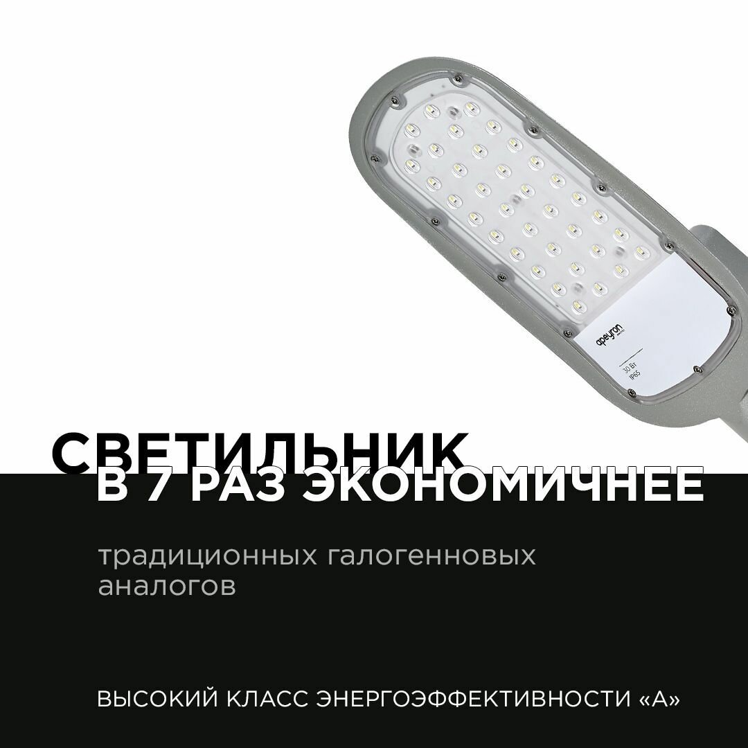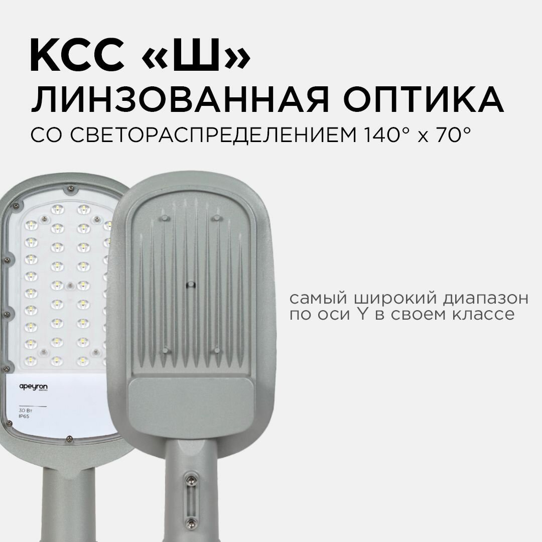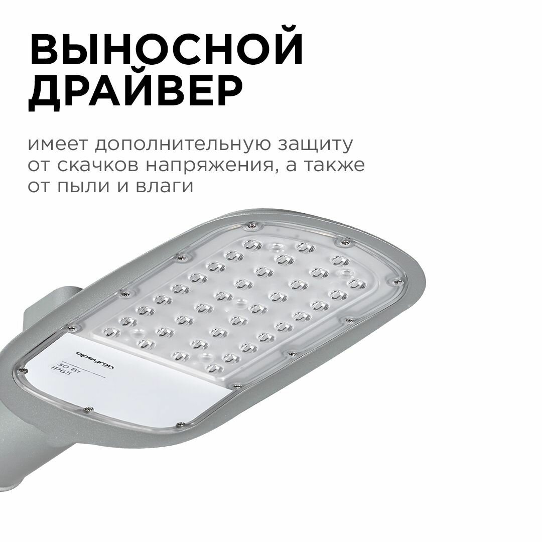 Консольный светодиодный светильник 29-01 излучает световой поток в 3300 Лм, потребляя при этом 30 Вт, что является эквивалентом лампы ДРЛ 125 Вт. Он отлично подойдет для освещения придомовых территорий, дворов и скверов, пешеходных зон. Рекомендуемая высота установки до 4 метров от поверхности земли. В светильнике используются светодиоды с дневным белым цветом свечения и цветовой температурой 5000 К, которая близка к естественному солнечному свету и наиболее комфортна для глаз. Корпус светильника имеет мощные ребра охлаждения, изготовлен из алюминиевого сплава с размерами 380х172х65мм. Рассеиватель изготовлен из поликарбоната, устойчивого к воздействию температур и солнечному свету, сохранит свою прозрачность и качество на протяжении всего срока службы. Благодаря линзам на рассеивателе, которые установлены напротив каждого светодиода, светильник имеет кривую силы света Ш и рассеивает световой поток под углом 140°/70°. Обеспечивает равномерное широкое освещение дорожного полотна с захватом тротуаров. В светильнике используется драйвер, который имеет дополнительную защиту от пыли и влаги, а также защиту от скачков напряжения, что обеспечит стабильное освещение даже при скачках напряжения в сети в диапазоне 85-265 В. Благодаря тому, что драйвер размещен отдельно от платы со светодиодами, а корпус светильника хорошо отводит тепло, освещение будет радовать долгие годы. Светильник предназначен для установки на кронштейн с посадочным диаметром Ø40-50 мм. Преимущества: - Полная защита от проникновения пыли, влаги и механических повреждений; - Высокая ветроустойчивость и защита от обледенения; - Широкое распределение светового потока по дорожному полотну; - Световая отдача 110 Лм/Вт; - Защита от импульсных помех; - Высокоэффективный изолированный драйвер с коэффициентом мощности PF>0,95.