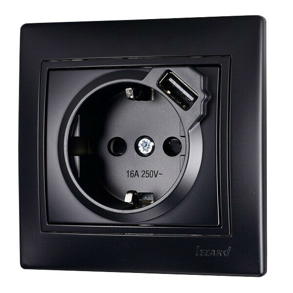 Розетка Lezard Mira 1-м СП 16А с заземл. + USB разъем черн. бархат 701-4242-181 Mira ()