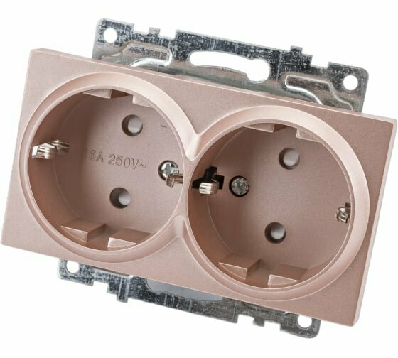 Розетка STEKKER GLS16-7114-02 на 2 гнездо, с заземлением. Материал: поликарбонат, латунь, цвет шампань, размер 90*50*45мм. Номинальное напряжение 250, номинальный ток 16А, диапазон рабочих температур 0.+35°C, IP20 Розетка 2-местная с защитной шторкой (механизм) с/з, 250В, 16А, серия Катрин, GLS16-7114-02, шампань арт. 39598 - этот удивительный объект дает возможность подключиться к электричеству, предлагая не только функциональность, но и возможность зарядить подключить различные приборы, и даже гаджеты благодаря своим USB портам (в зависимости от модели). Он словно невидимый помощник, предоставляющий возможность пополнить зарядку любых устройств с легкостью и комфортом. Этот изделие сочетает в себе высокую прочность и стильный дизайн, создавая ощущение надежности и современности одновременно. Благодаря своему металлическому оттенку, оно добавляет шик в любое помещение, будто призванное дополнить его эстетику. Как защитник техники и электроники, это устройство излучает уверенность в его работоспособности и надежности. Эта архитектурная деталь объединяет в себе функции розетки и usb-порта, создавая идеальное сочетание стандартных решений и инновационных технологий. Включив эту колодку в повседневную жизнь, можно быть уверенным в ее надежности и безопасности - словно опытный проводник сквозь мир электричества.