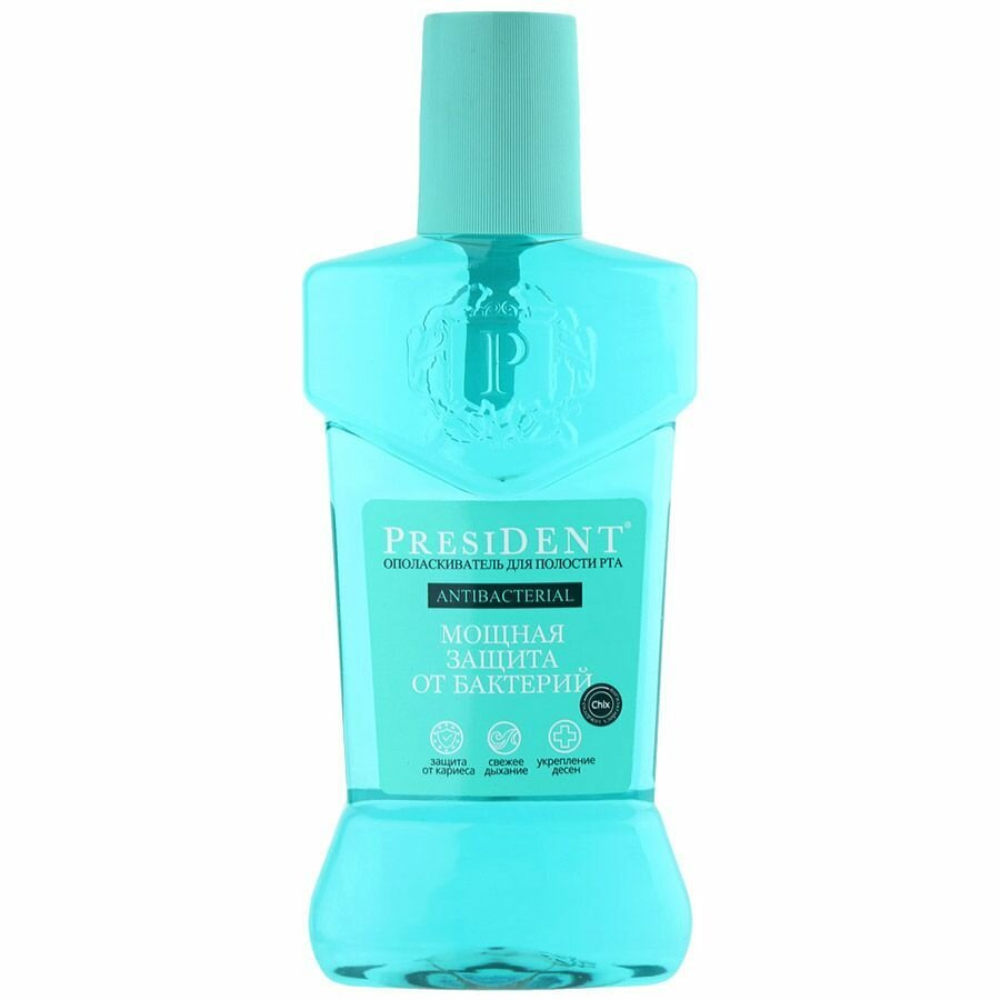 Ополаскиватель для полости рта PresiDENT Antibacterial является эффективным дополнением к зубной пасте для полноценной гигиены полости рта. Ополаскиватель проникает в самые труднодоступные участки. При разведении 1:5 может быть использован как жидкость для ирригатора. Средство обеспечивает тщательную антибактериальную обработку зубов и конструкций в полости рта, оказывает противовоспалительное действие. В составе содержится хлоргексидин (0,2%), экстракты мальвы, эхинацеи и ромашки.