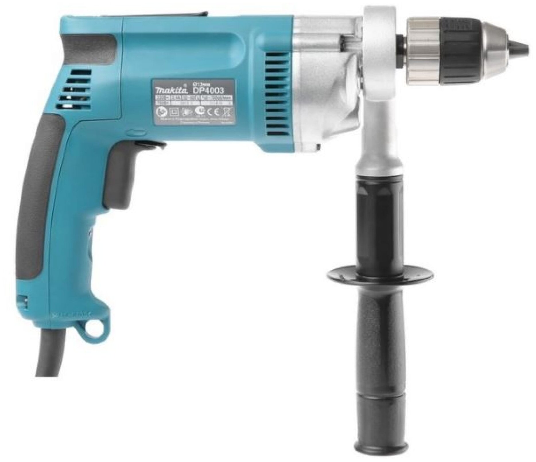 Сетевая дрель Makita DP4003 - это профессиональный инструмент с мощным мотором, предназначенный для сверления отверстий в древесине до 38 мм и стали до 13 мм. Дрель Makita DP4003 оснащается двухгильзовым быстрозажимным патроном. Установить сверло в патрон достаточно просто.