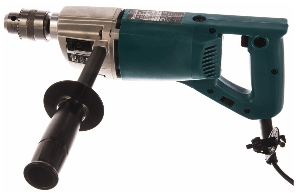 Сетевая дрель Makita 6300-4 - это профессиональный инструмент, предназначенный для сверления отверстий в древесине до 30 мм и металле до 13 мм, зенкирования, размешивания и смешивания жидкостей. Дрель Makita 6300-4 оснащается промышленным кулачковым патроном, рассчитанным на тяжёлые условия работы. Зажимается сверло в патроне при помощи ключа для кулачкового патрона.