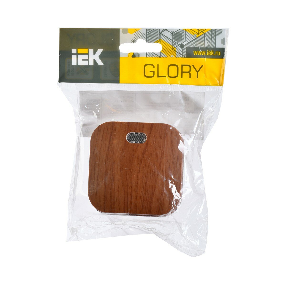Выключатель IEK GLORY 1кл. индикатор/подсветка открытый монтаж в сборе дуб (EVH11-K24-10) EVH11-K24-10 Glory дуб